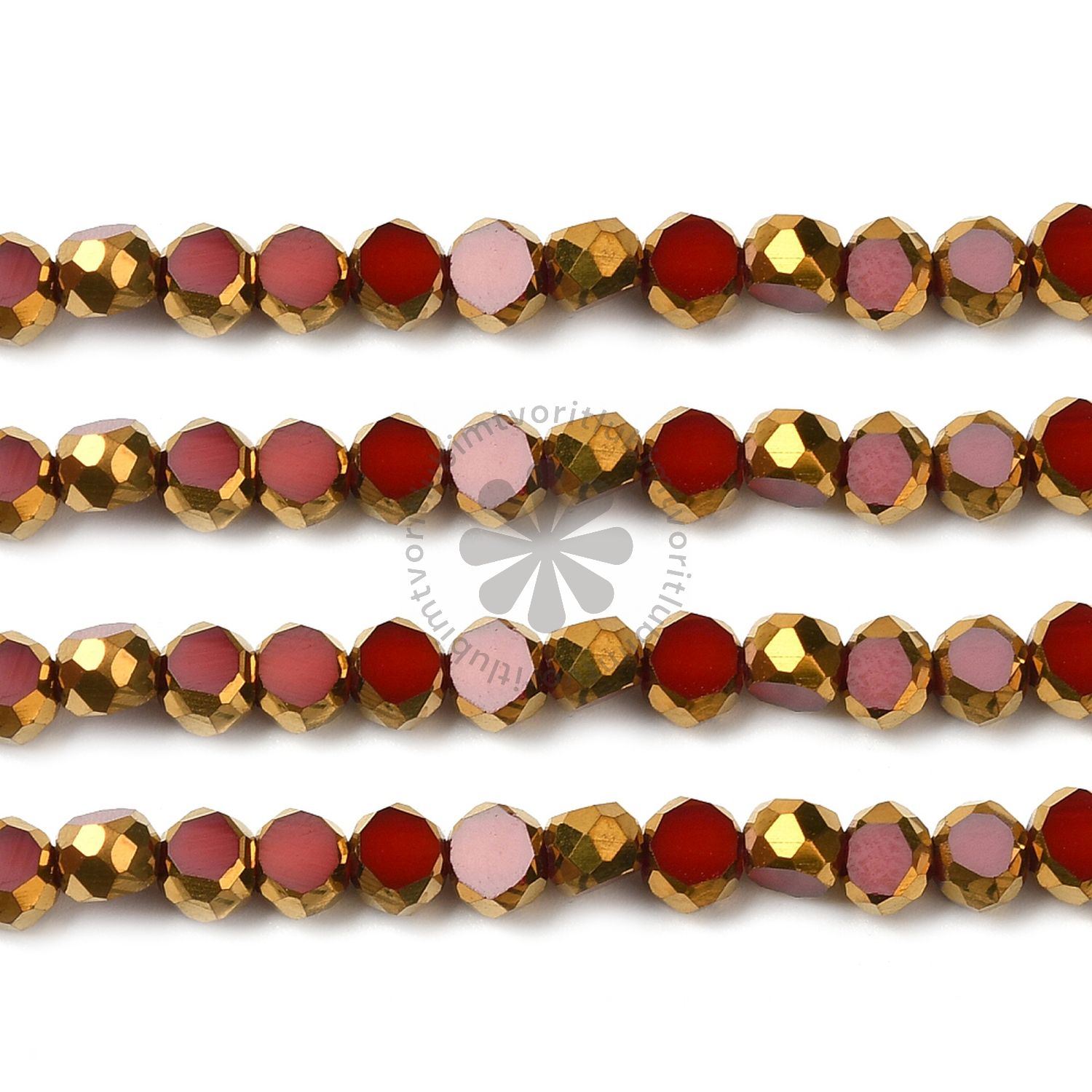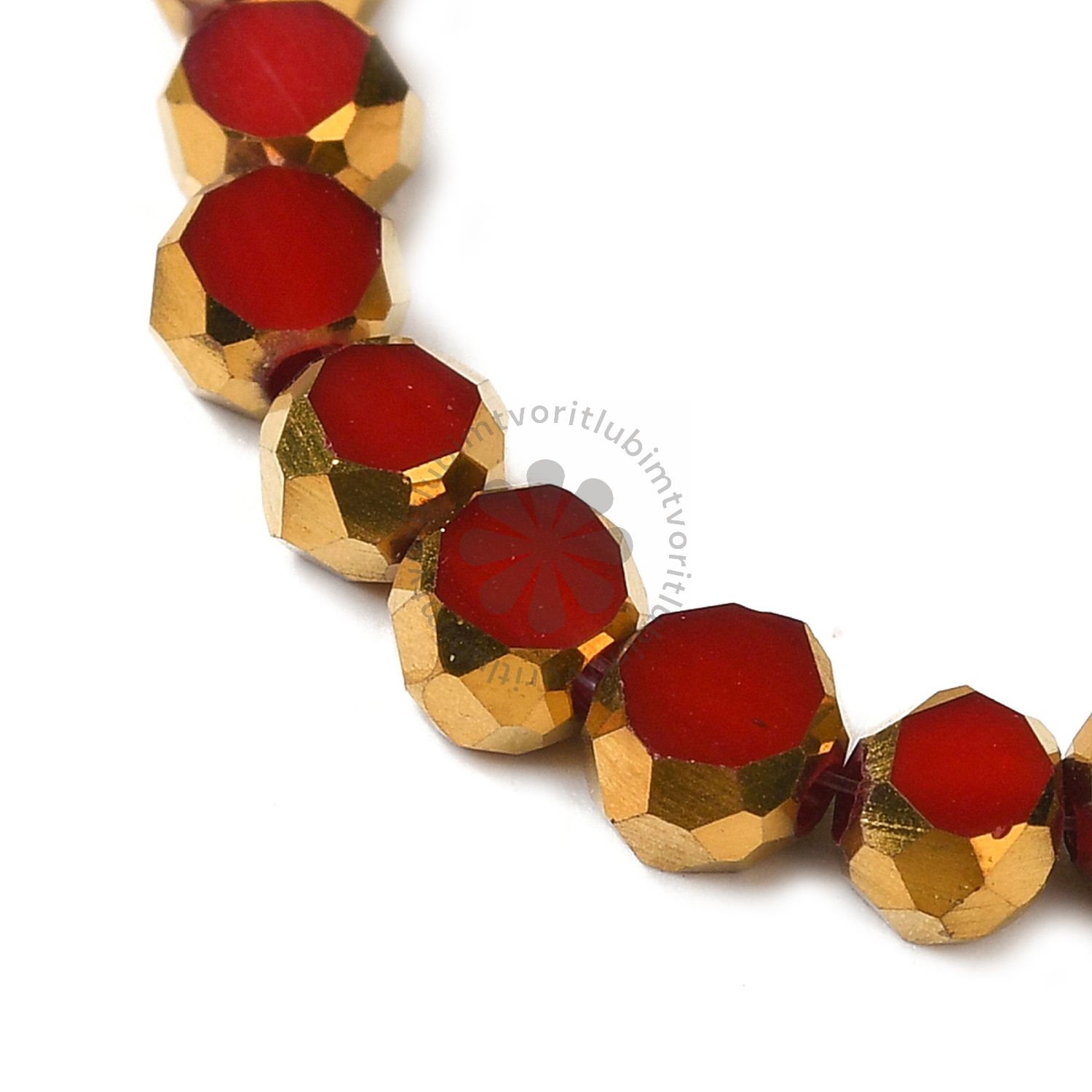 Pôsobivé sklenené korálky s brúseným povrchom a polovičným zlatým pokovovaním, ktoré im dodáva jemný trblietavý akcent. Ideálny na tvorbu originálnych náramkov, náhrdelníkov či náušníc.