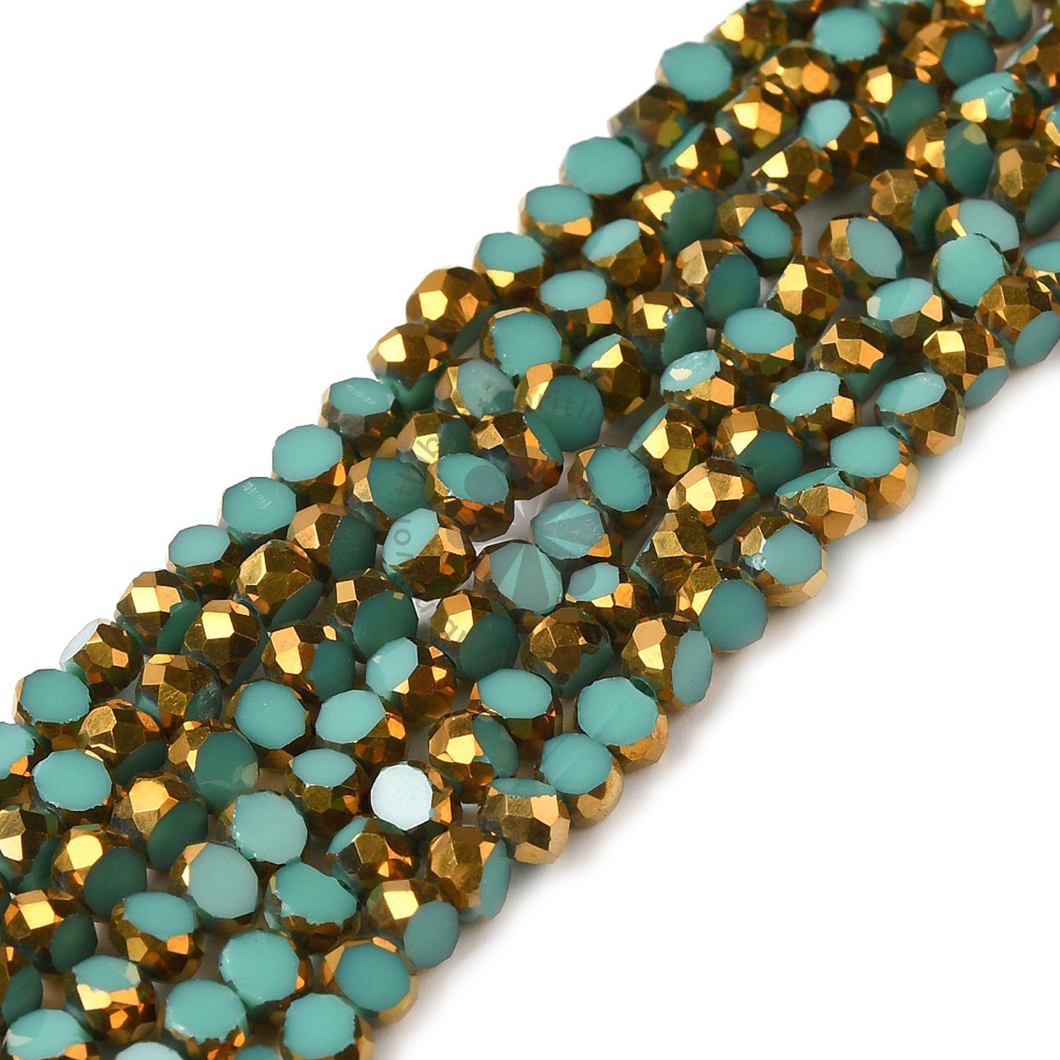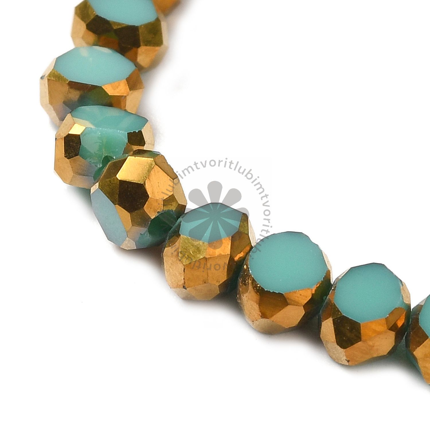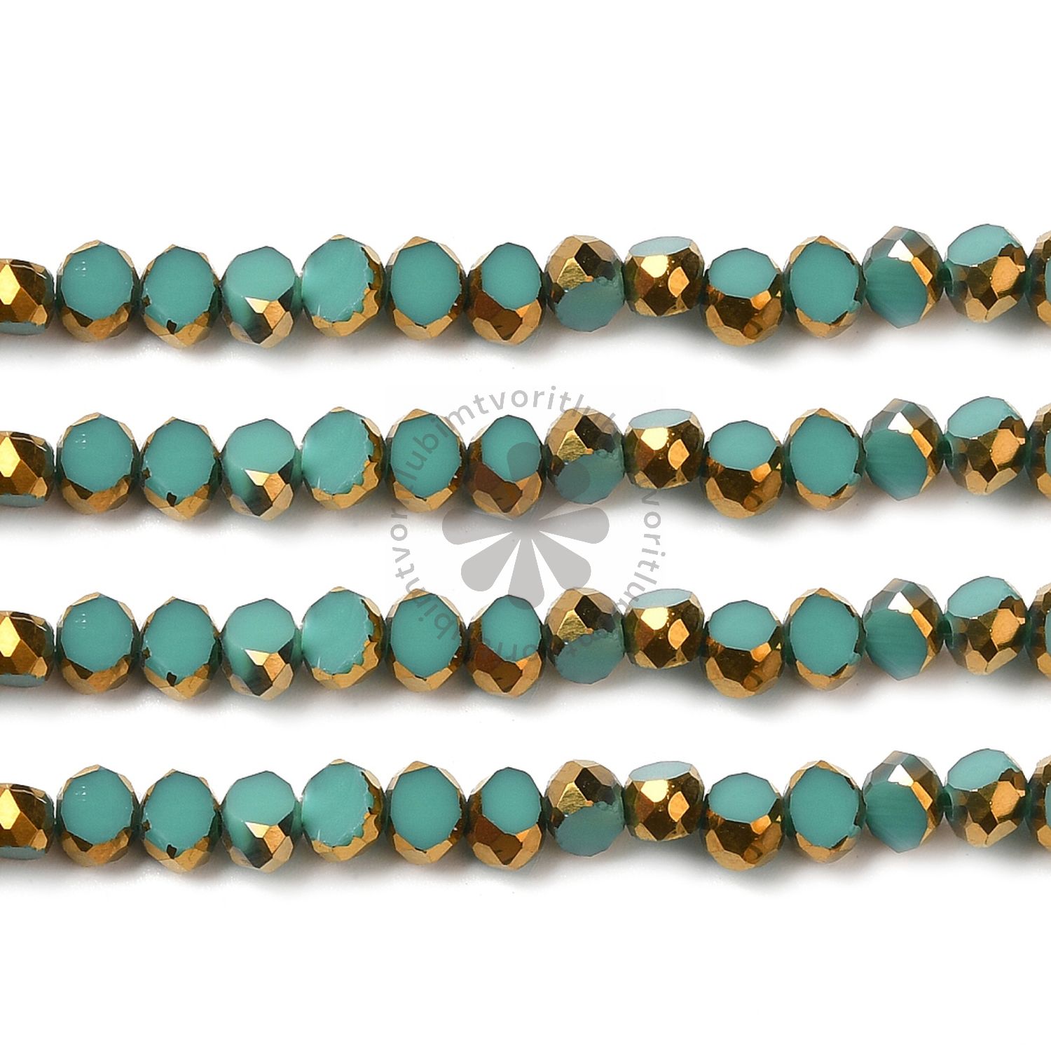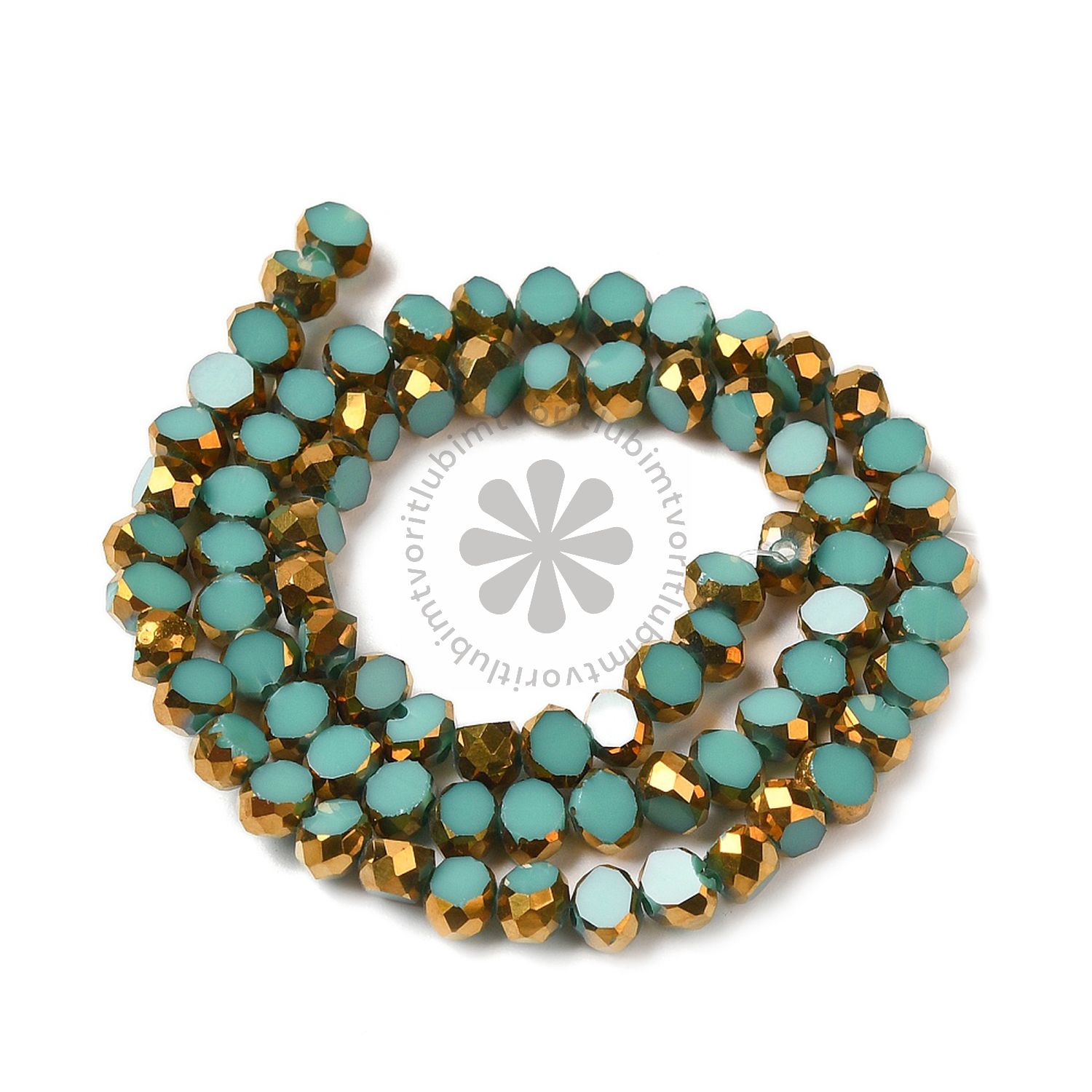 Pôsobivé sklenené korálky s brúseným povrchom a polovičným zlatým pokovovaním, ktoré im dodáva jemný trblietavý akcent. Ideálny na tvorbu originálnych náramkov, náhrdelníkov či náušníc.