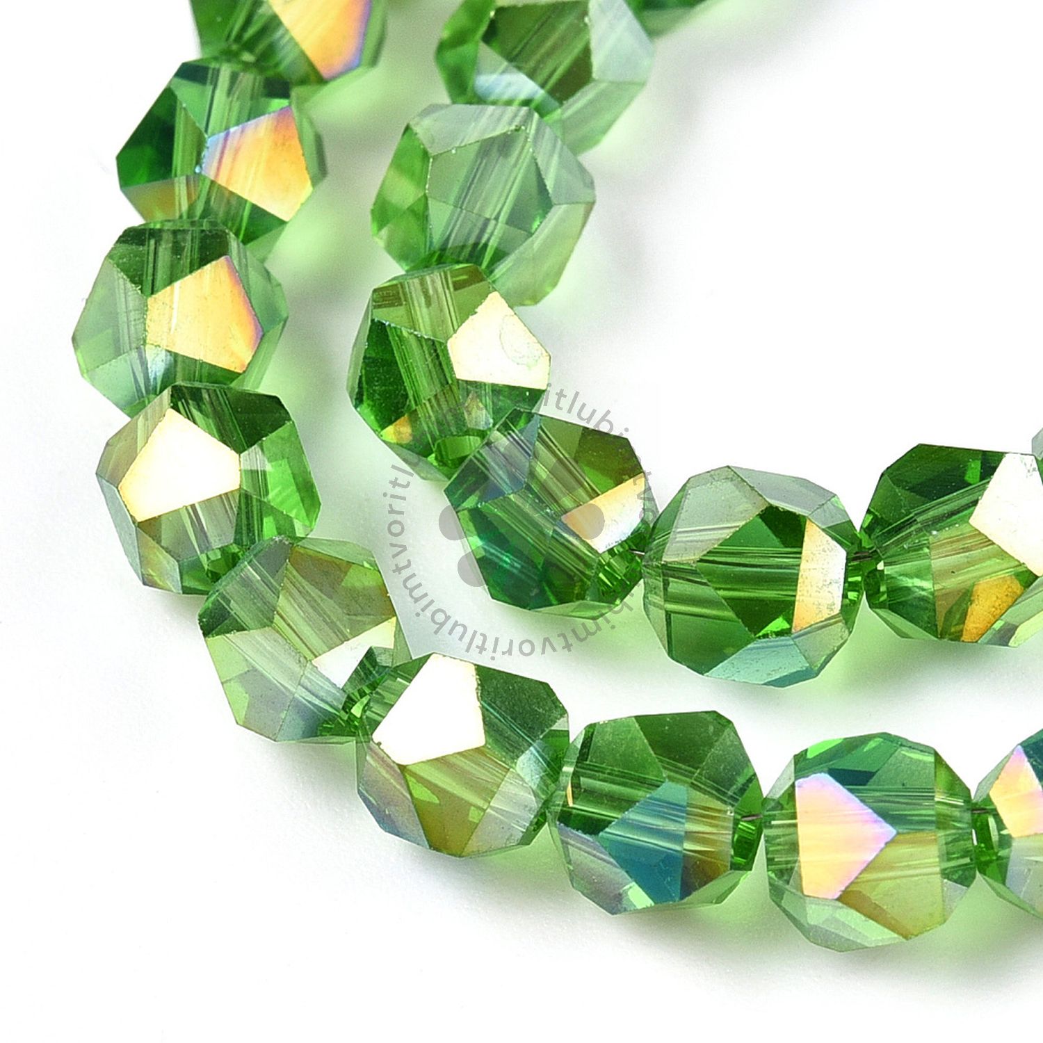 Priehľadné sklenené korálky s nádherným AB (Aurora Borealis) efektom, ktorý im dodáva jemný dúhový lesk. Sú fazetované, takže krásne zachytávajú svetlo a dodajú tvojim šperkom eleganciu a iskru.