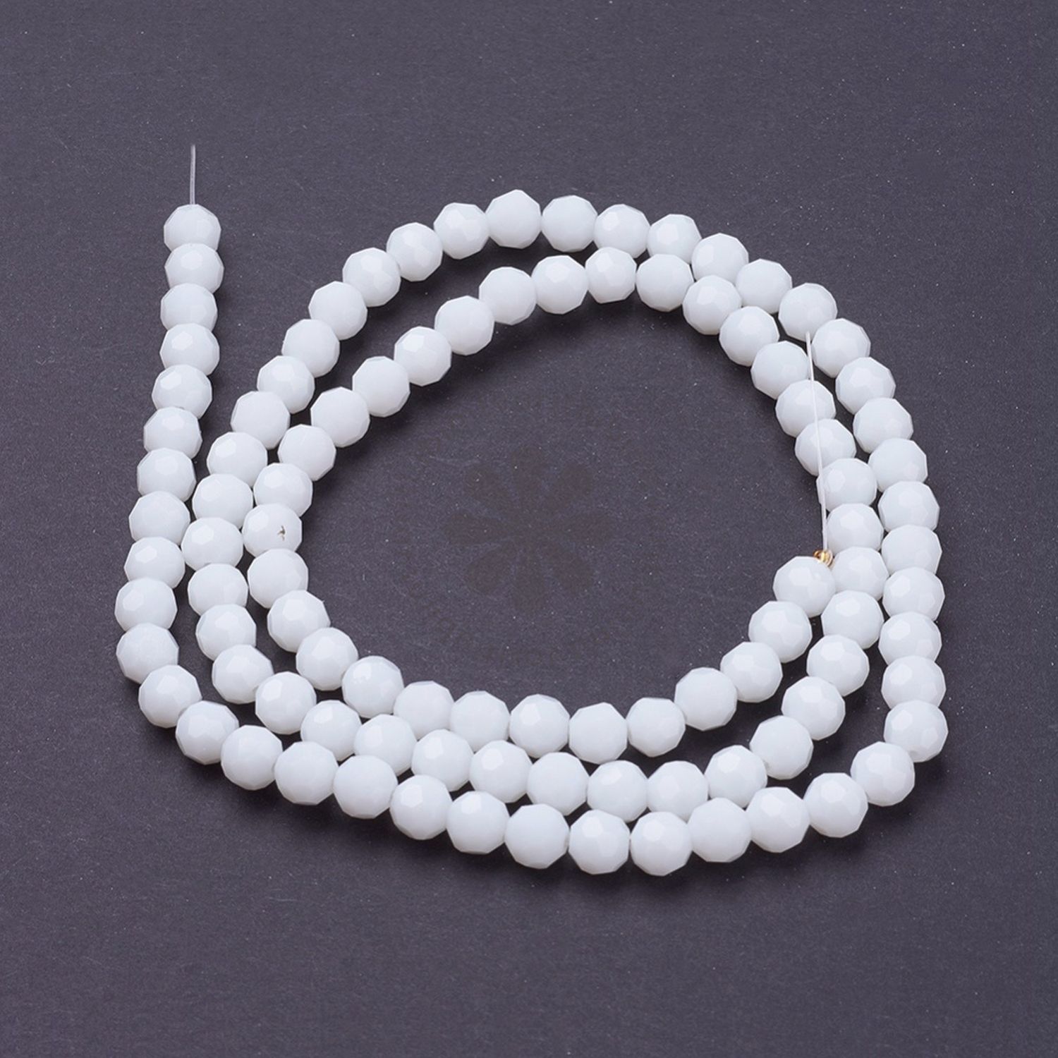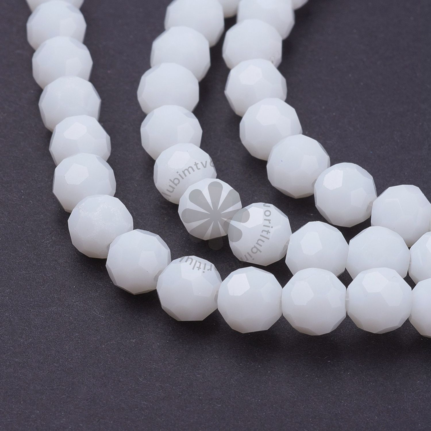 Elegantné sklenené korálky s brúseným povrchom, ktoré krásne odrážajú svetlo a vytvárajú trblietavý efekt. Ich biela farba dodáva šperkom nadčasový a sofistikovaný vzhľad, ideálne na tvorbu náhrdelníkov, náramkov či náušníc s jemným leskom.