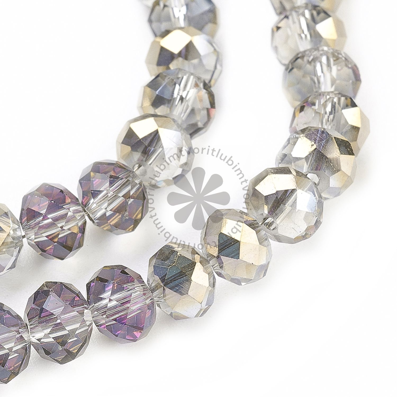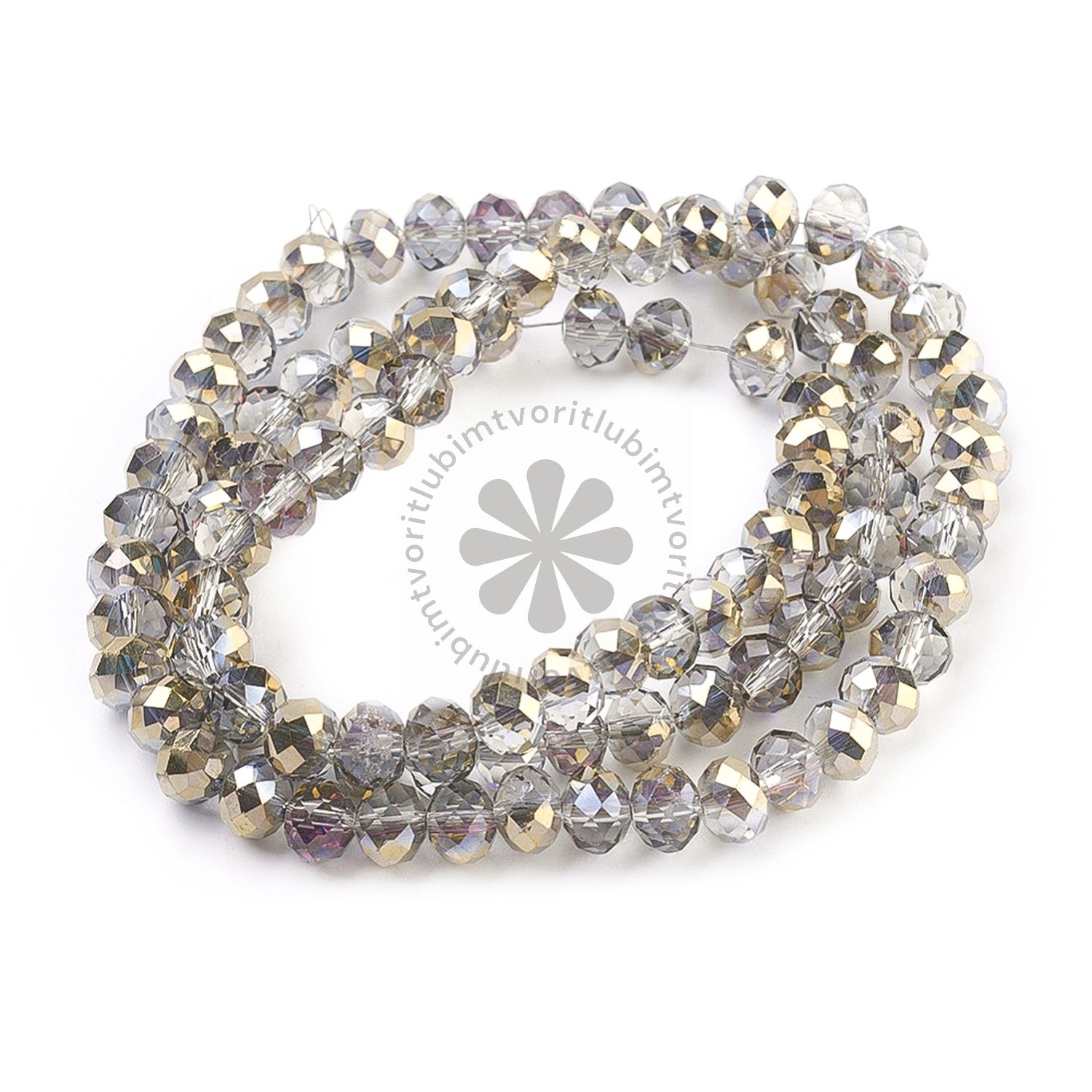 Elegantné sklenené korálky v tvare rondelle s brúseným povrchom a polovičným strieborným pokovovaním, ktoré dodáva jemný trblietavý efekt. Ich nadčasový strieborný odtieň sa hodí na tvorbu náramkov, náhrdelníkov či náušníc, kde chcete dosiahnuť sofistikovaný a luxusný vzhľad.