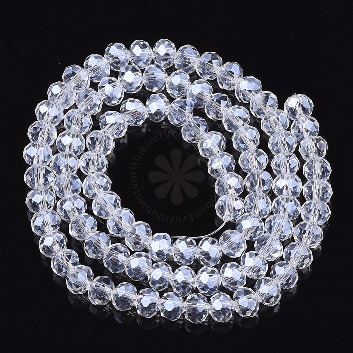 Elegantné sklenené korálky s brúseným tvarom rondelle a perleťovým pokovovaním, ktoré vytvára jemný a sofistikovaný lesk. Ich číry odtieň dodáva šperkom nadčasovú eleganciu, ideálne na tvorbu náramkov, náhrdelníkov či náušníc s jemným trblietavým efektom.