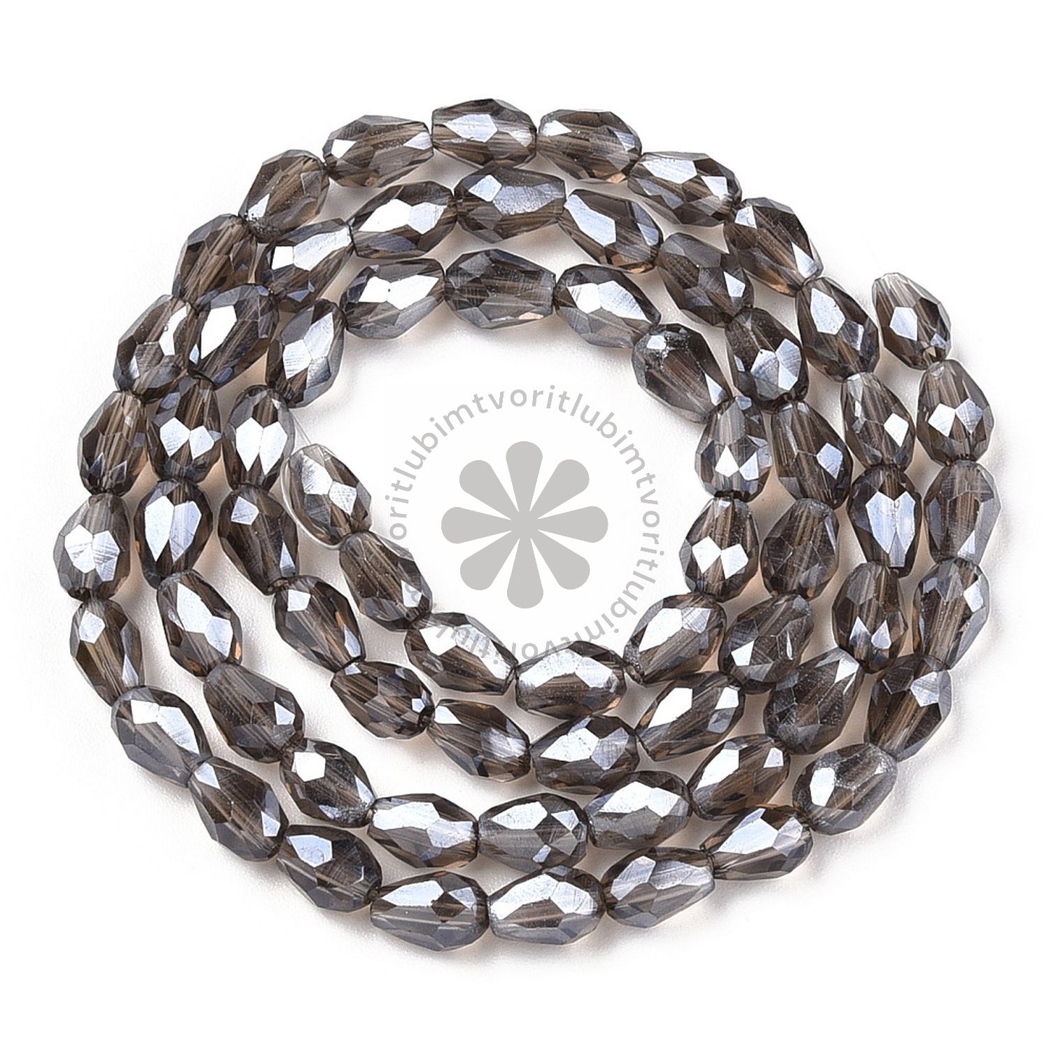 Brúsené sklenené korálky v tvare slzy s perleťovým leskom sú ideálne na výrobu jemných a elegantných šperkov. Ich fazetovaný povrch krásne odráža svetlo, čím dodáva šperkom sofistikovaný vzhľad.