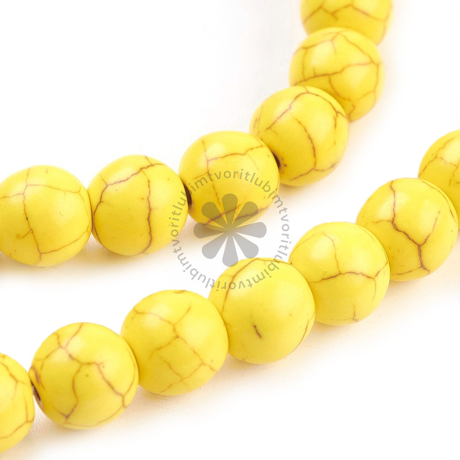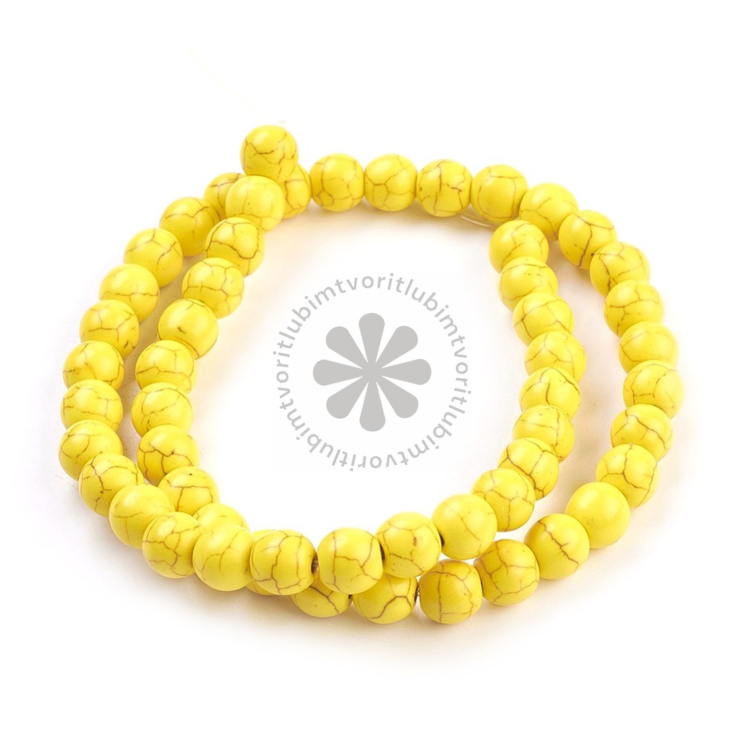 Korálky z minerálu tyrkenit – praktická alternatíva k prírodnému tyrkysu, vhodná na výrobu šperkov a dekorácií. Tyrkenit sa vyznačuje charakteristickou žilnatosťou a jemným leskom.