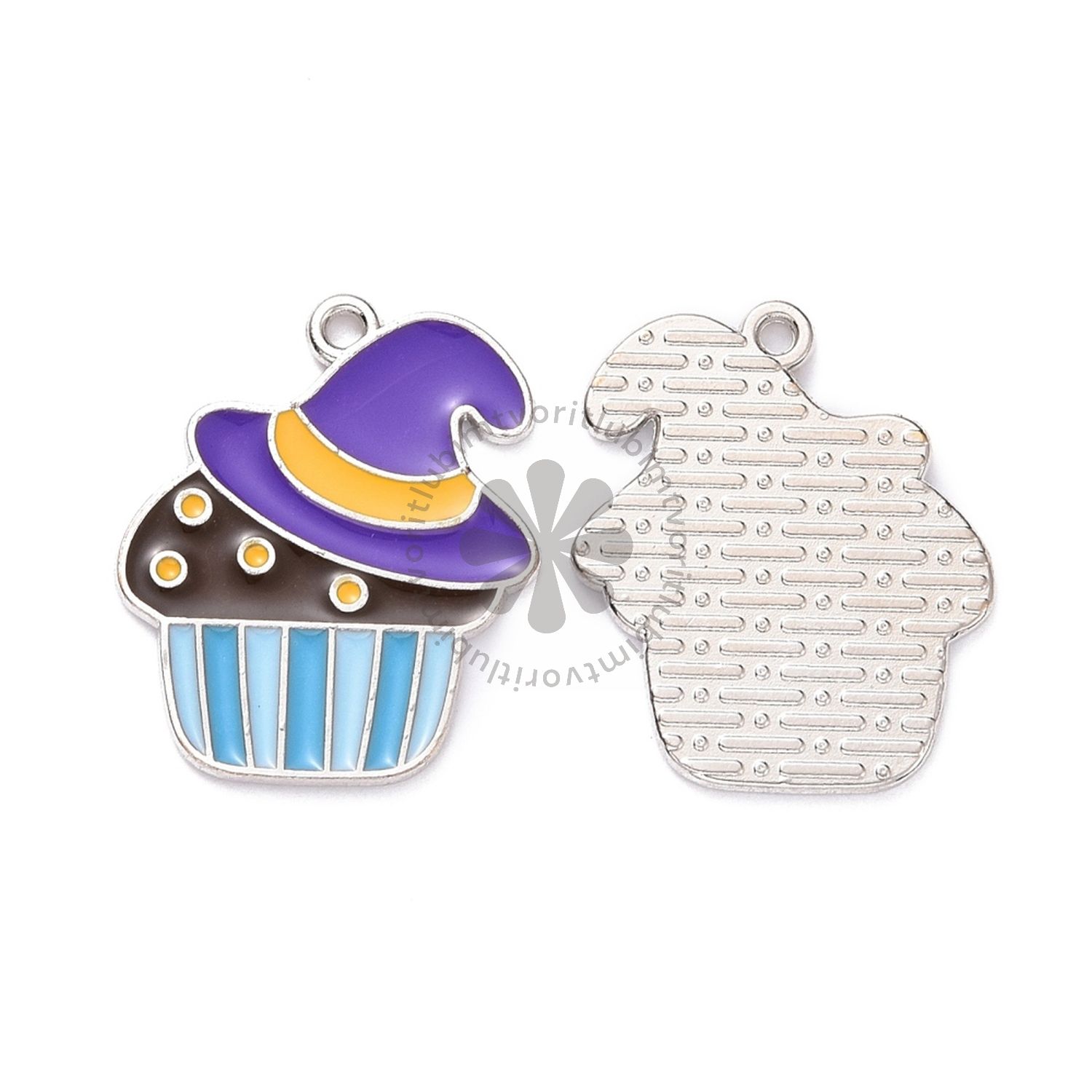 Úvod » Bižutérne komponenty » Prívesky » Smaltované prívesky » Halloween prívesok - klobúk s tortou, 22x18 mm - 1 ks