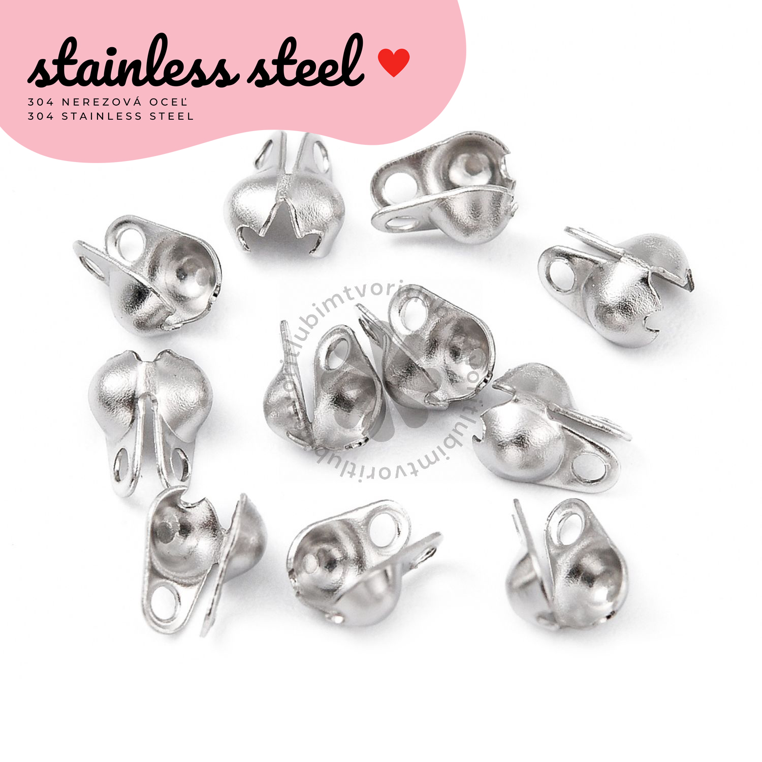 Kvalitné kaloty z nerezovej ocele sú ideálne pre ukončenie a ochranu uzlov v náhrdelníkoch či náramkoch. S ich pomocou dodáte svojmu šperku profesionálny vzhľad.