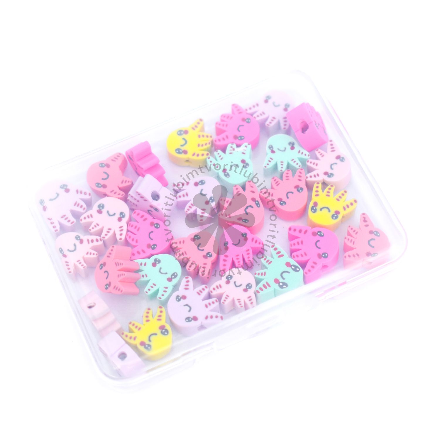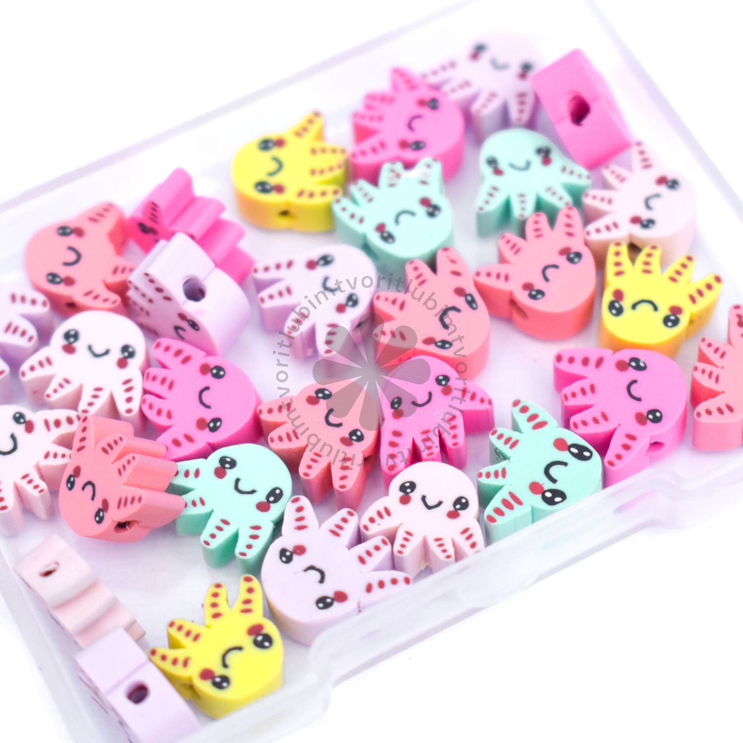 Veselé korálky z polymérovej hmoty s motívmi chobotničiek na výrobu hravých náramkov, náhrdelníkov, príveskov či detských doplnkov. V balení nájdeš mix farieb vďaka čomu budú tvoje handmade výtvory originálne a veselé.
