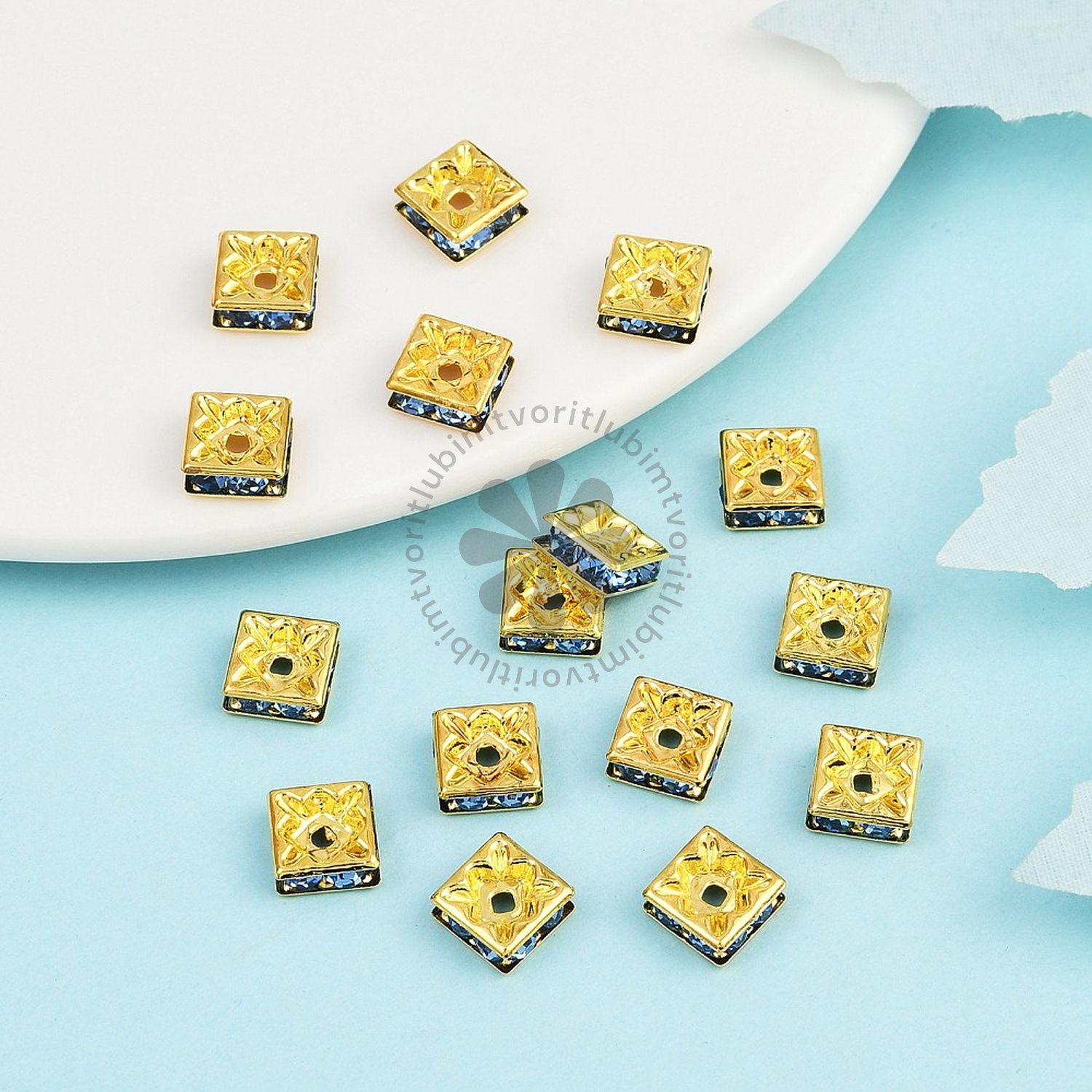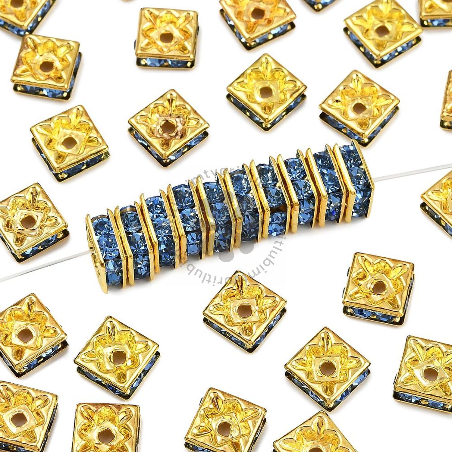 Elegantné mosadzné medzikusy v tvare štvorca bez obsahu niklu, zdobené čírymi krištáľovými kamienkami, ktoré sa krásne trblietajú pri každom pohybe. Vďaka zlatému odtieňu pôsobia nadčasovo a dokonale doplnia akýkoľvek šperk – od jemných náramkov až po elegantné náhrdelníky.