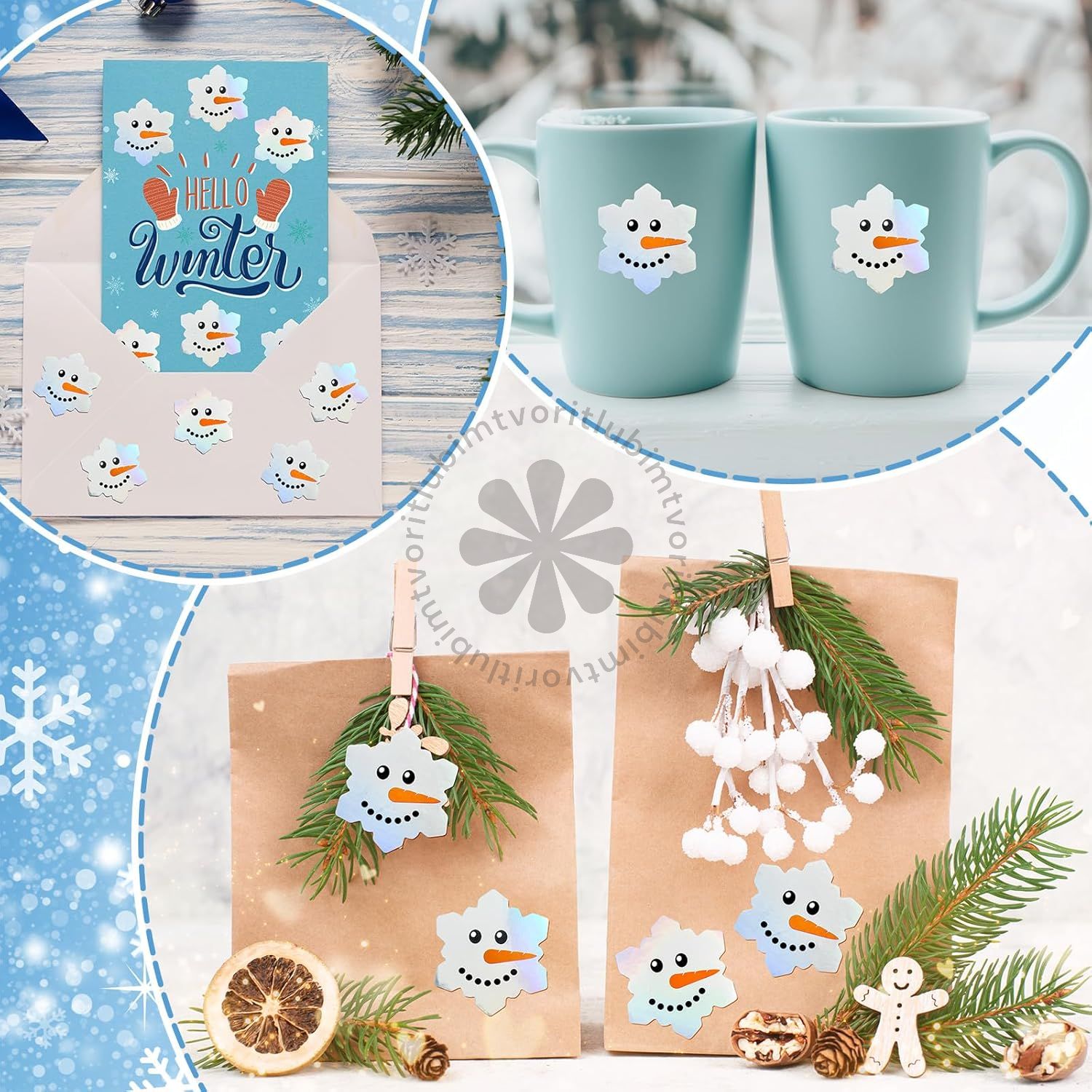 Samolepiace nálepky s holografickým laserovým efektom a motívom snehuliaka sú ideálne na zdobenie obálok, časopisov, darčekov alebo na tvorbu DIY dekorácií na Vianoce a Nový rok. Vďaka vodeodolnému PVC materiálu sú odolné a dodajú každému projektu zimnú atmosféru.