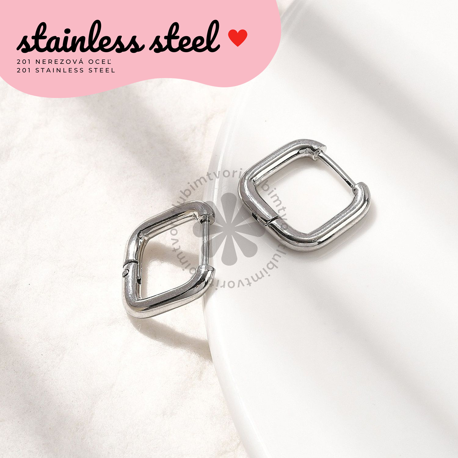 Materiál: telo náušnice je z nerezovej ocele 201, ihla z chirurgickej ocele 316