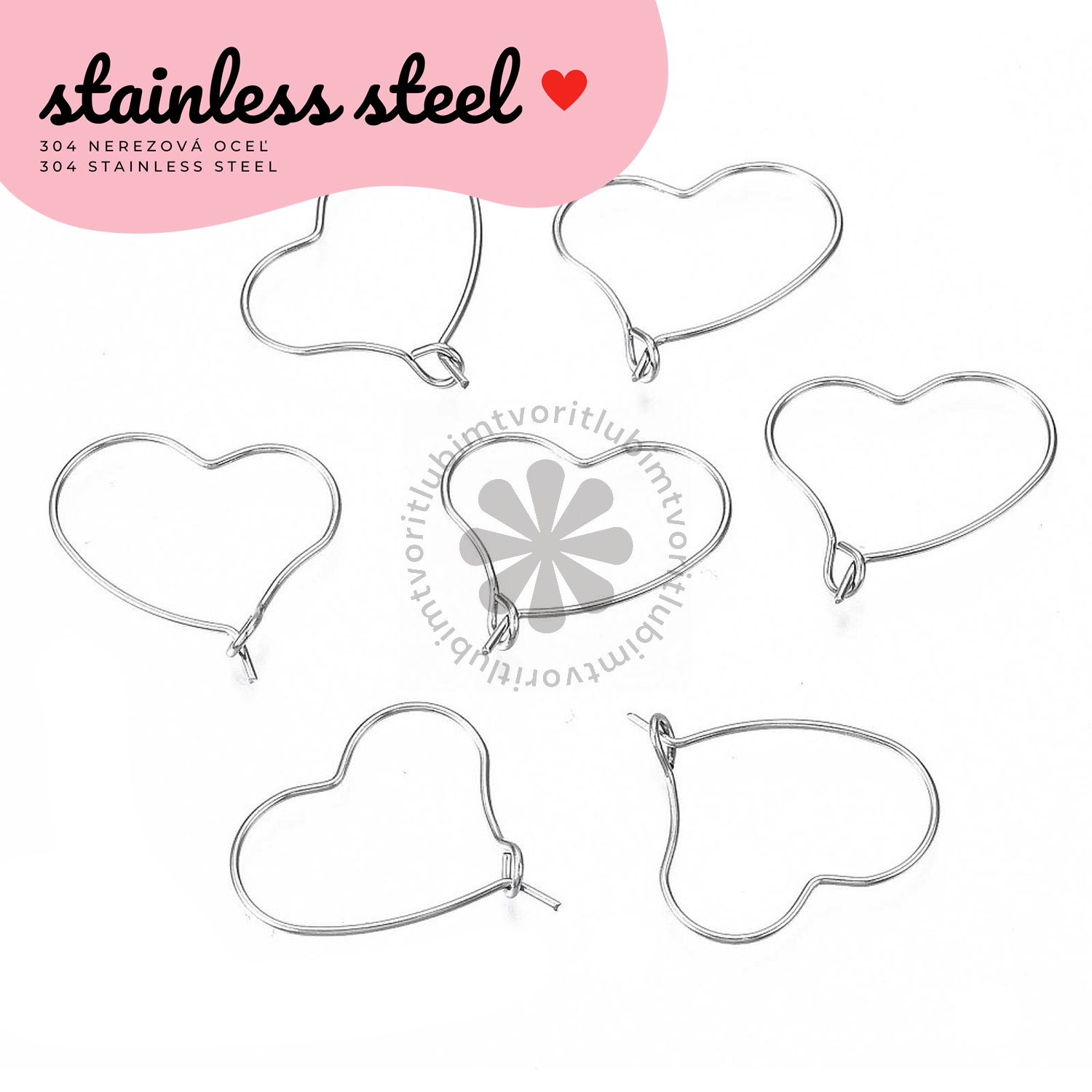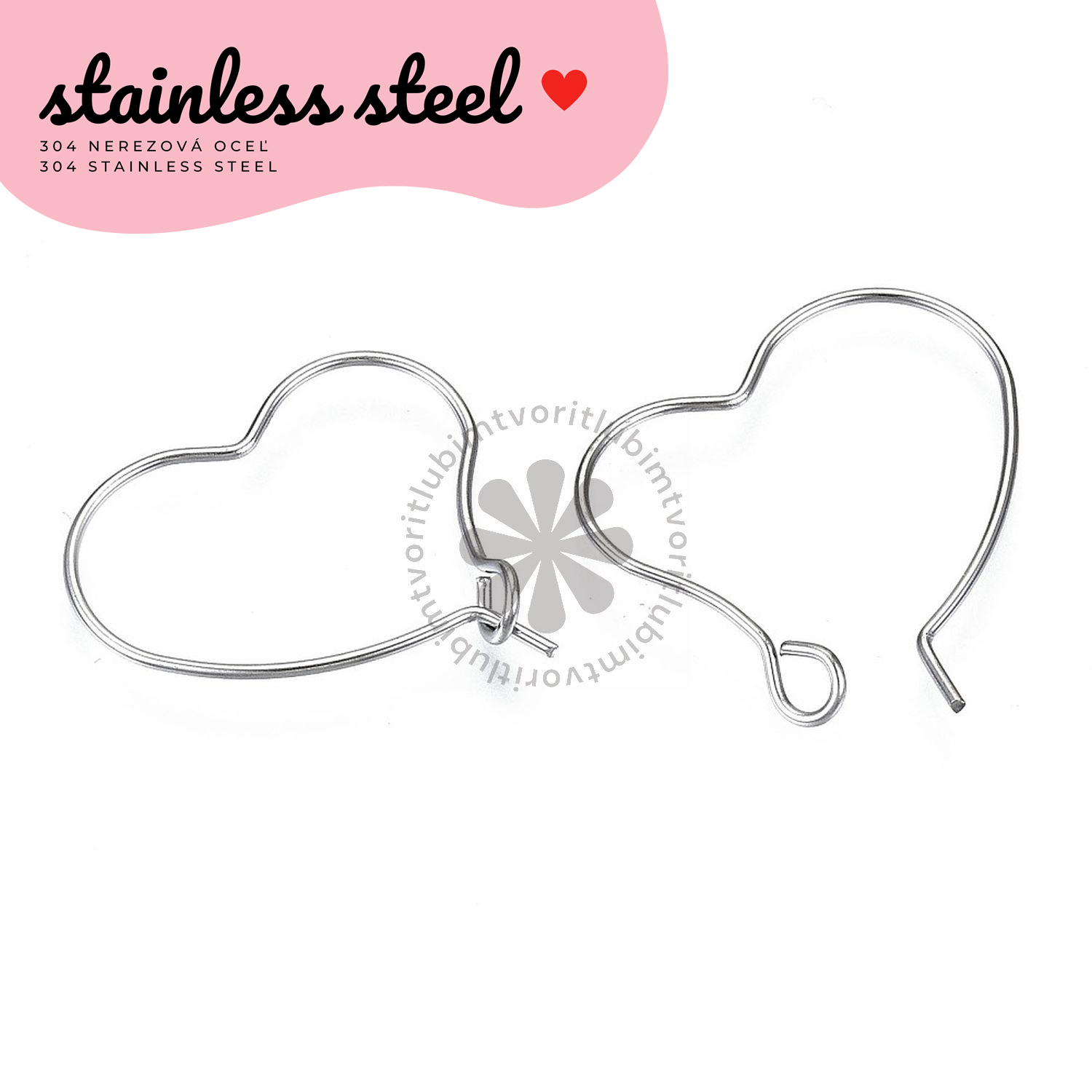 Úvod » Bižutérne komponenty » Chirurgická oceľ » Náušnicový základ – srdce, 32 mm - 1 pár
