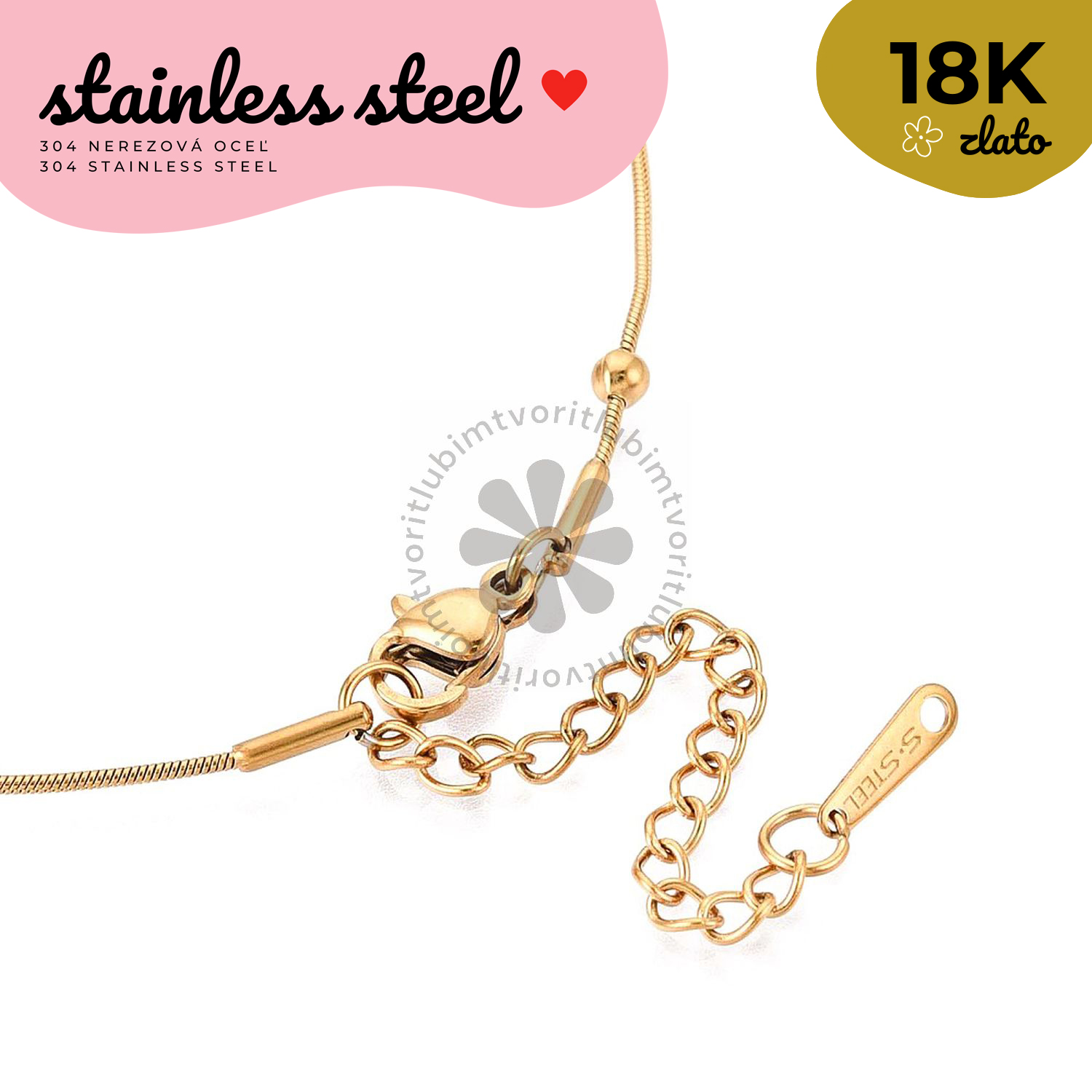Jemná ozdobná retiazka je elegantným základom pre náhrdelníky s príveskami aj minimalistické šperky. Vyrobená z kvalitnej 304 nerezovej ocele a upravená 18K zlatým pozlatením s Ion Plating (IP), ktoré zabezpečuje dlhodobý lesk a vyššiu odolnosť proti stmavnutiu..