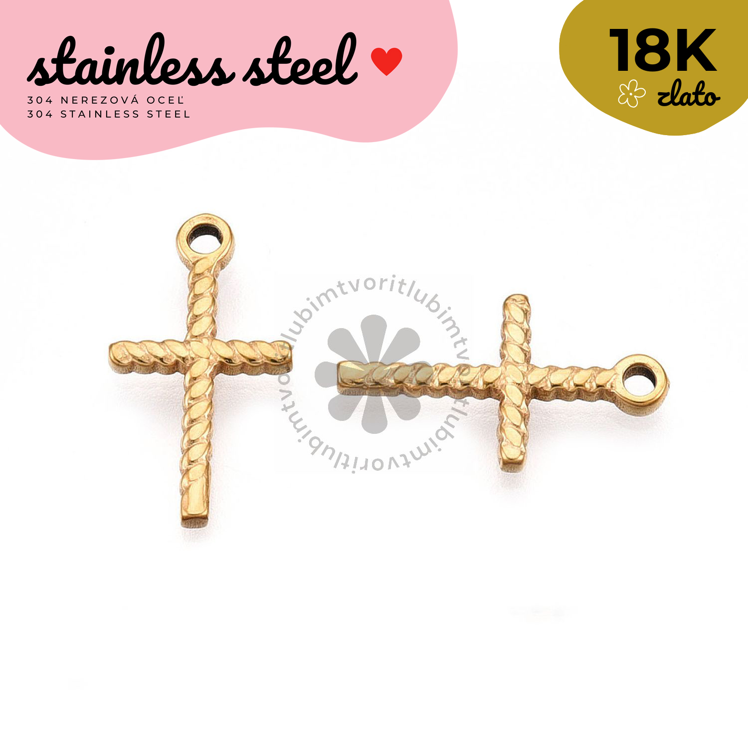Nerezový prívesok krížik s 18K zlatým pokovovaním – kvalitný komponent z nerezovej ocele 304 s iontovým pokovovaním v zlatej farbe. Ideálny na výrobu náramkov, náhrdelníkov alebo iných šperkov s jemným a nadčasovým vzhľadom.