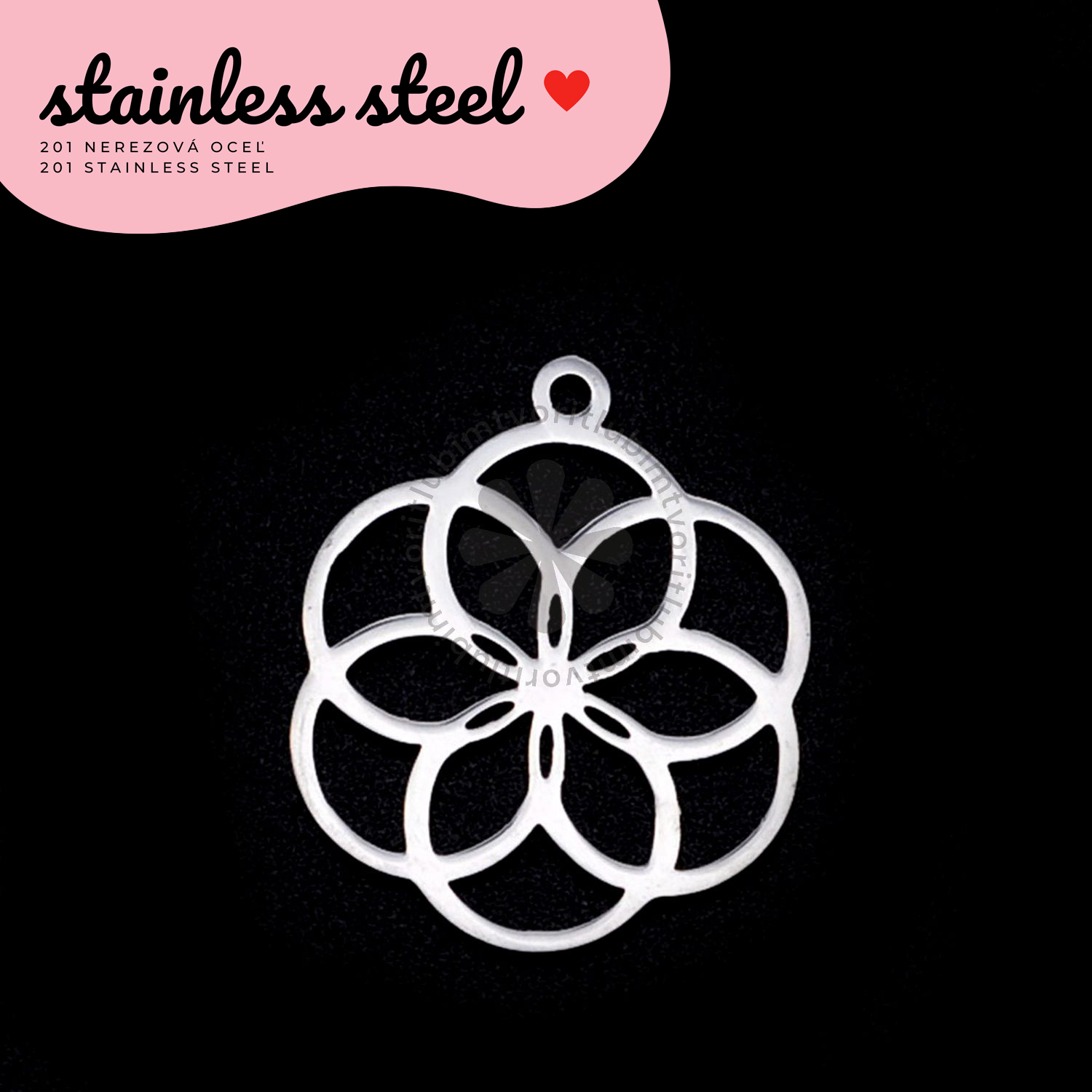 Kovový prívesok z 201 nerezovej ocele typu s motívom Kvetu života v štýle posvätnej geometrie. Elegantné a ľahké komponenty, ktoré dodajú tvojim šperkom harmonický a spirituálny nádych. Ideálne na výrobu náušníc, náhrdelníkov či náramkov.