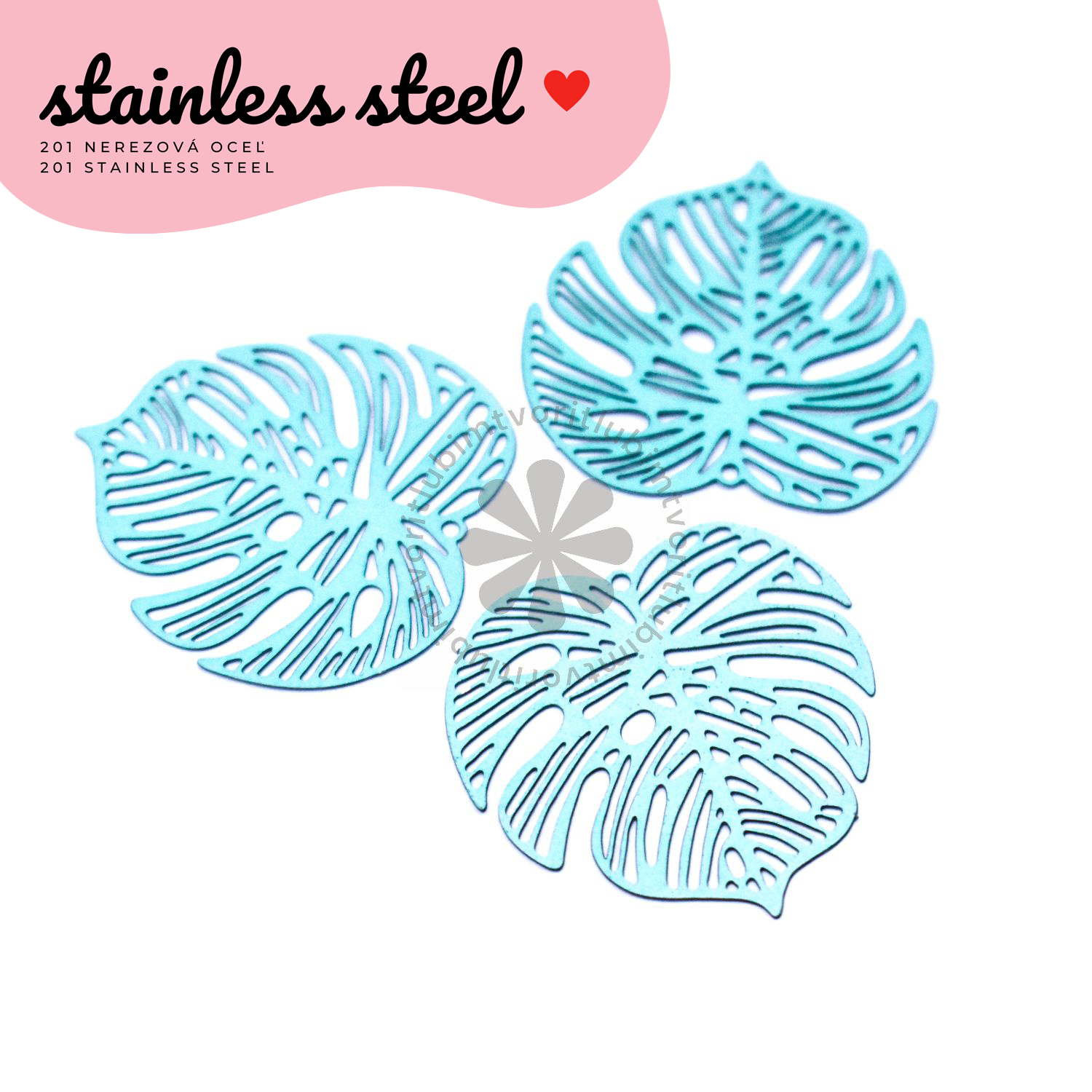 Prívesok z kvalitnej 201 nerezovej ocele s jemným rytím a motívmi tropických listov – monstera. Vďaka detailnému spracovaniu a ľahkej konštrukcii sa skvele hodí na výrobu náušníc, náramkov alebo letných príveskov.