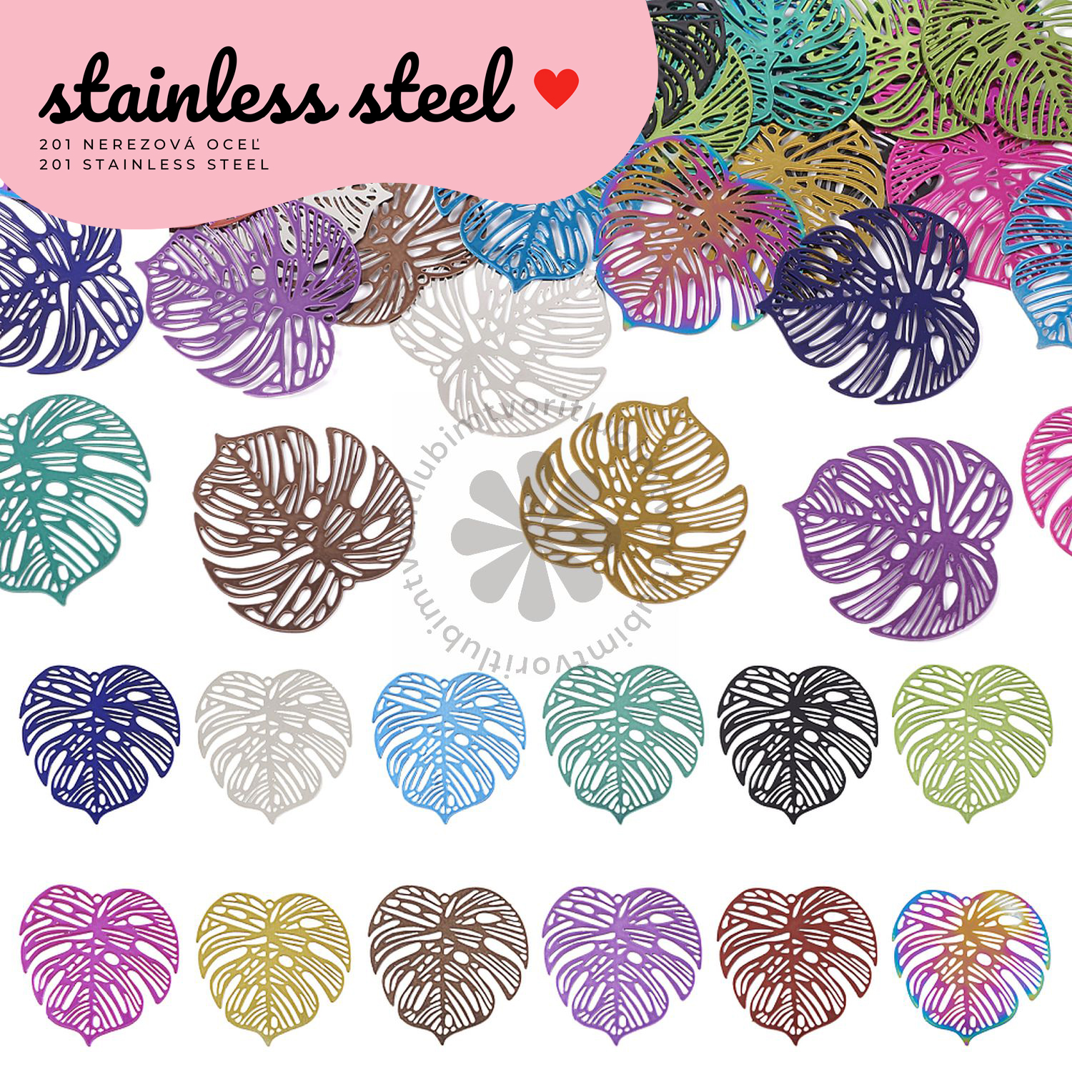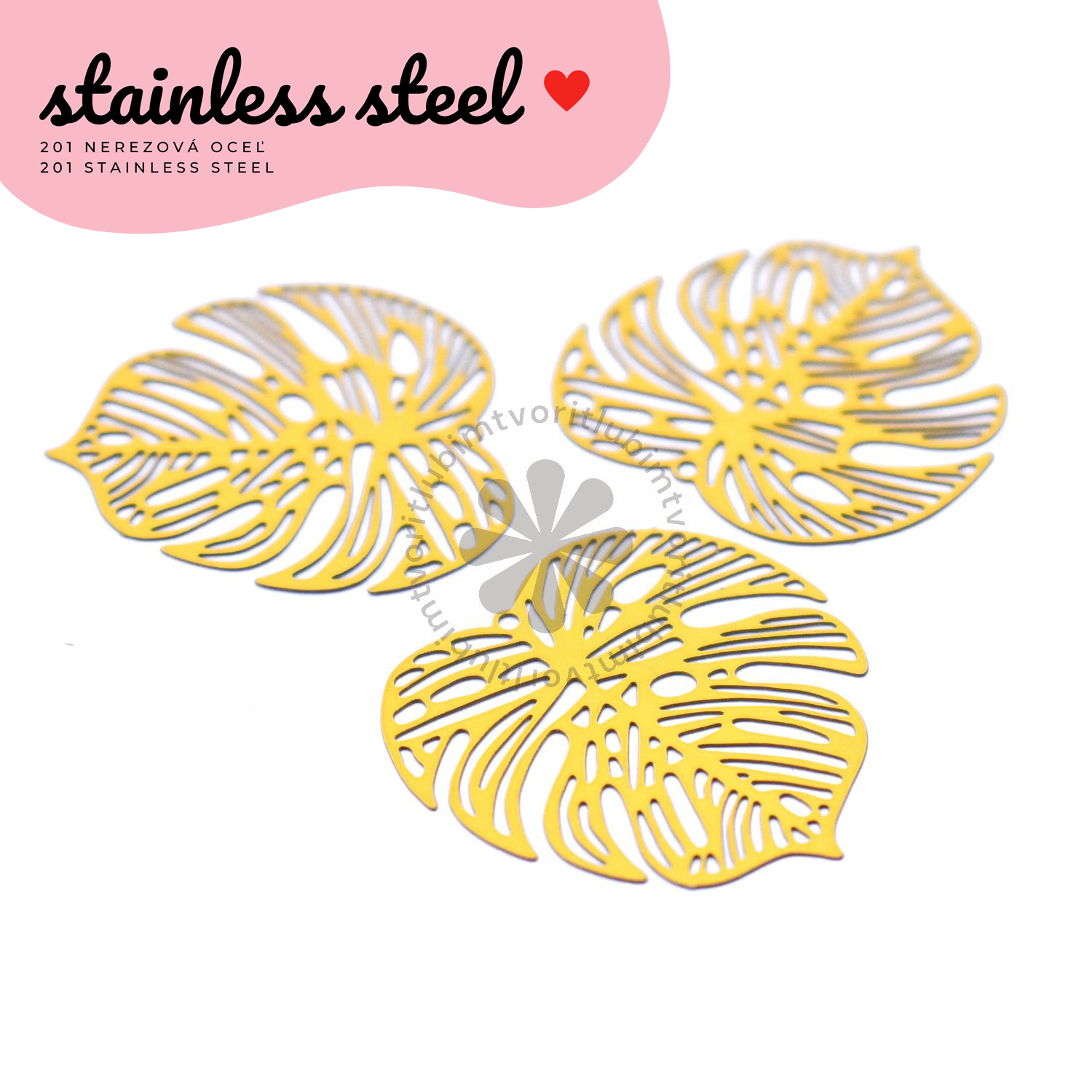 Prívesok z kvalitnej 201 nerezovej ocele s jemným rytím a motívmi tropických listov – monstera. Vďaka detailnému spracovaniu a ľahkej konštrukcii sa skvele hodí na výrobu náušníc, náramkov alebo letných príveskov.