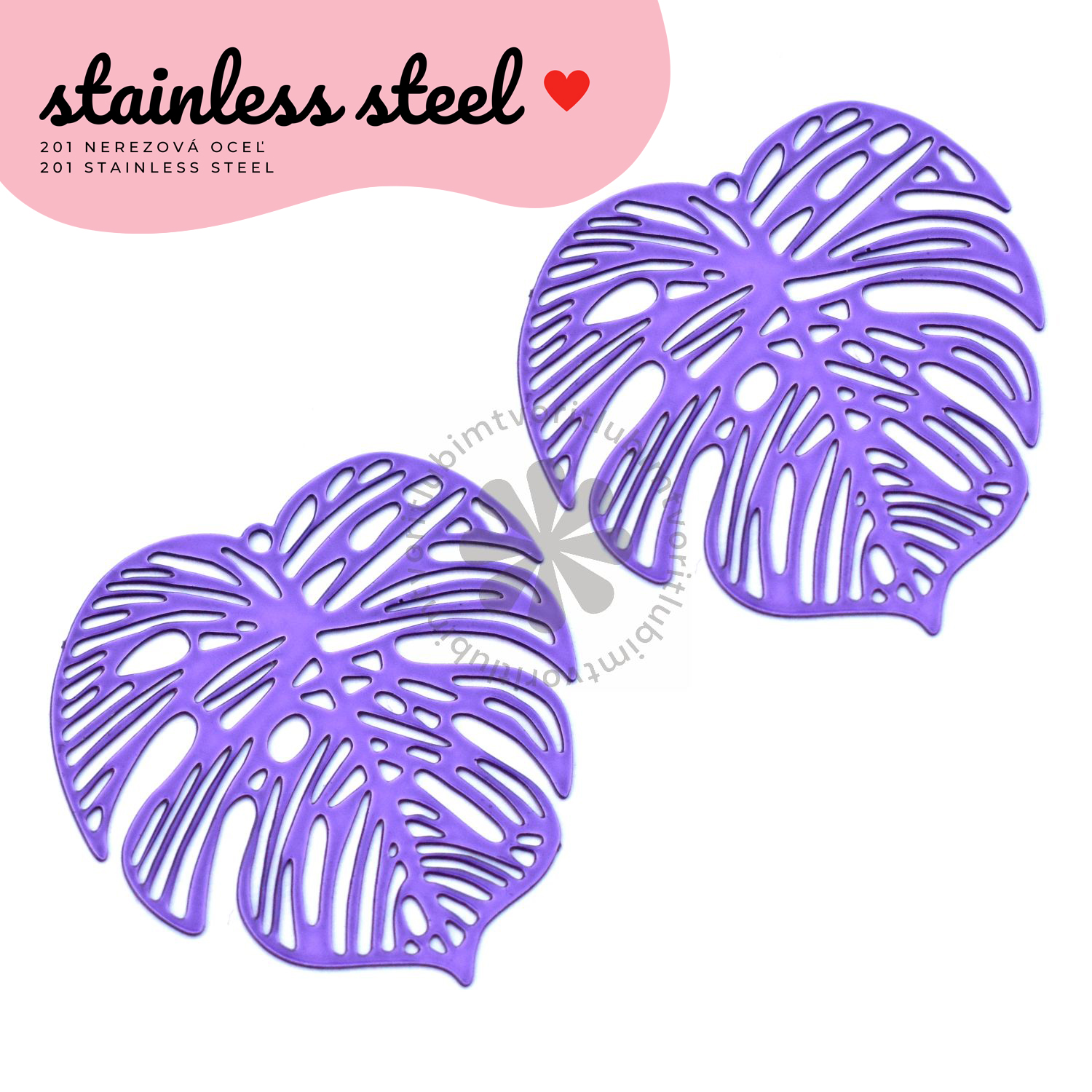 Prívesok z kvalitnej 201 nerezovej ocele s jemným rytím a motívmi tropických listov – monstera. Vďaka detailnému spracovaniu a ľahkej konštrukcii sa skvele hodí na výrobu náušníc, náramkov alebo letných príveskov.