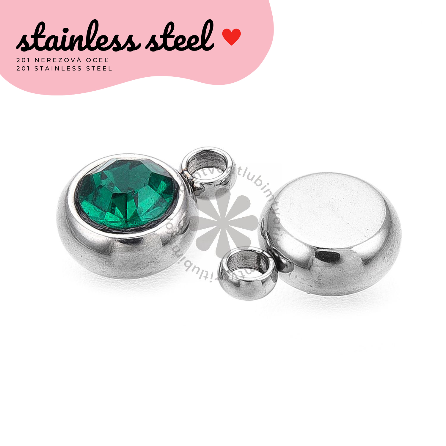 Prívesky z nerezovej ocele 201 so zirkónom v tvare plochého kruhu pôsobia elegantne a jemne. Pridaný kryštál dodáva šperkom výrazný lesk a farebný akcent. Vďaka nerezovej oceli sú prívesky odolné a dlho si zachovajú svoj vzhľad.