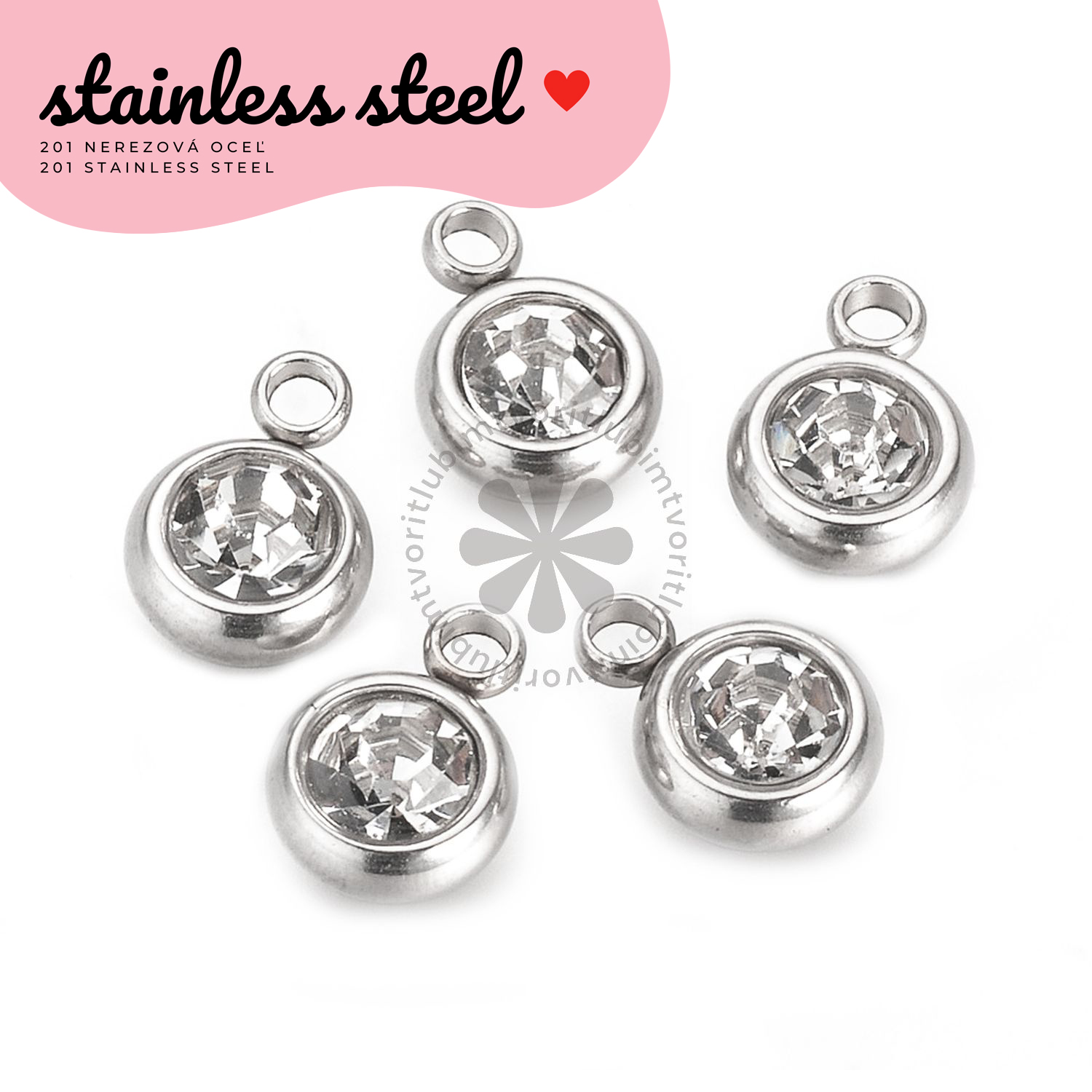 Prívesky z nerezovej ocele 201 so zirkónom v tvare plochého kruhu pôsobia elegantne a jemne. Pridaný kryštál dodáva šperkom výrazný lesk a luxusný akcent. Vďaka nerezovej oceli sú prívesky odolné a dlho si zachovajú svoj vzhľad.