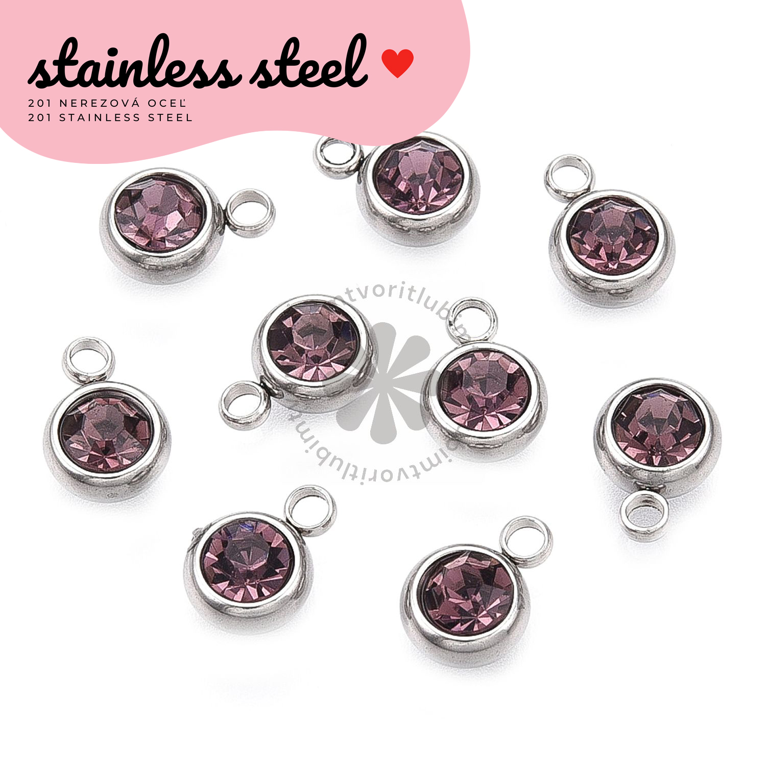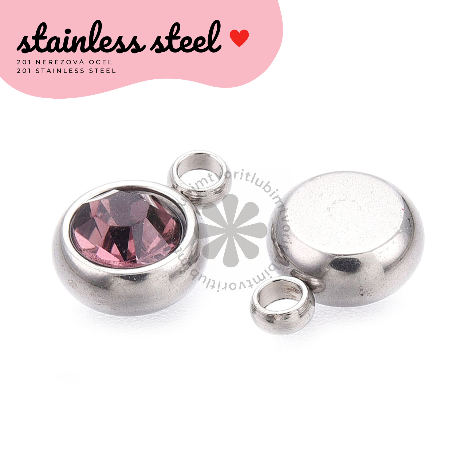 Prívesky z nerezovej ocele 201 so zirkónom v tvare plochého kruhu pôsobia elegantne a jemne. Pridaný kryštál dodáva šperkom výrazný lesk a farebný akcent. Vďaka nerezovej oceli sú prívesky odolné a dlho si zachovajú svoj vzhľad.