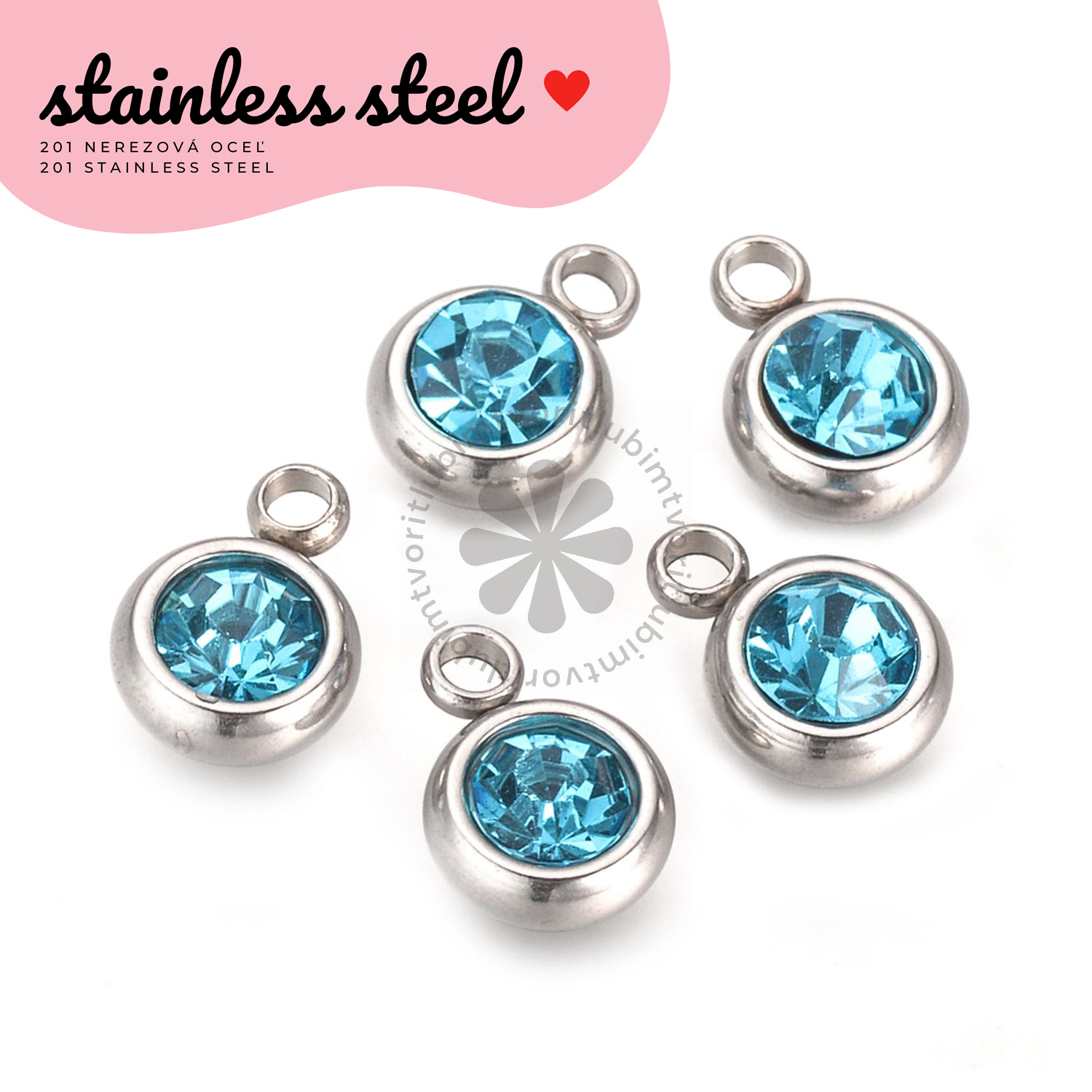 Prívesky z nerezovej ocele 201 so zirkónom v tvare plochého kruhu pôsobia elegantne a jemne. Pridaný kryštál dodáva šperkom výrazný lesk a farebný akcent. Vďaka nerezovej oceli sú prívesky odolné a dlho si zachovajú svoj vzhľad.