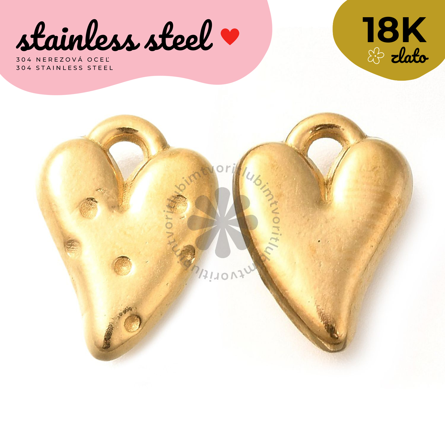 Elegantný prívesok v tvare srdca, vyrobený z kvalitnej 304 nerezovej ocele a pozlátený reálnym 18K zlatom pomocou IP (Ion Plating) technológie. Trvácny, odolný a zároveň luxusný doplnok, ktorý dodá šperkom nadčasový a elegantný vzhľad. Ideálny na náramky, náhrdelníky či darčekové šperky, ktoré majú zaujať.
