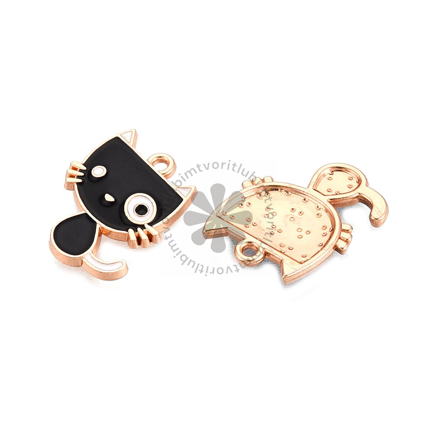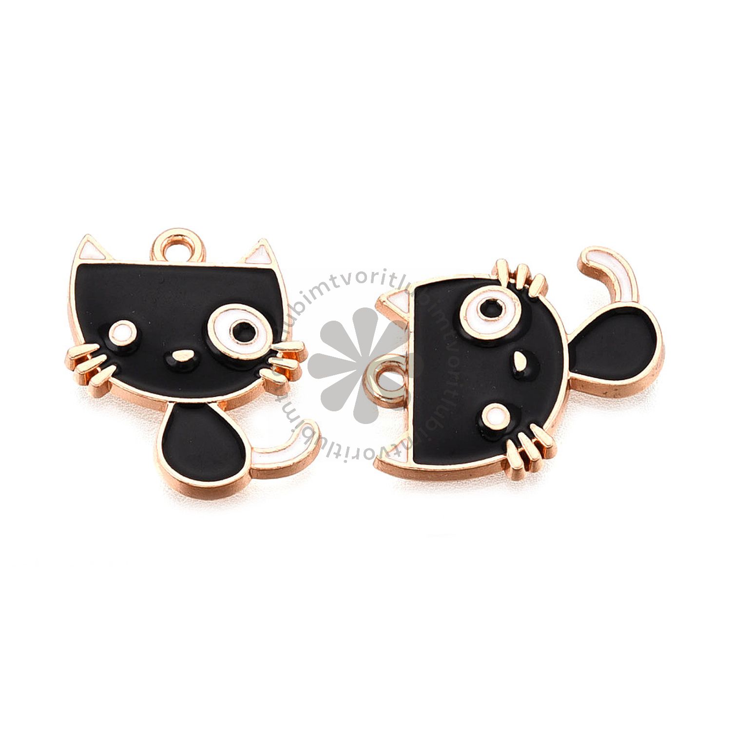 Roztomilý prívesok v tvare mačičky je ideálny na tvorbu originálnych šperkov aj doplnkov. Kombinácia zlatistej farby kovu a čierneho smaltu pôsobí elegantne, výrazne a perfektne sa hodí na náušnice, náramky aj náhrdelníky. Prívesok je vyrobený zo zliatiny bez kadmia a olova, takže je bezpečný na handmade tvorbu.