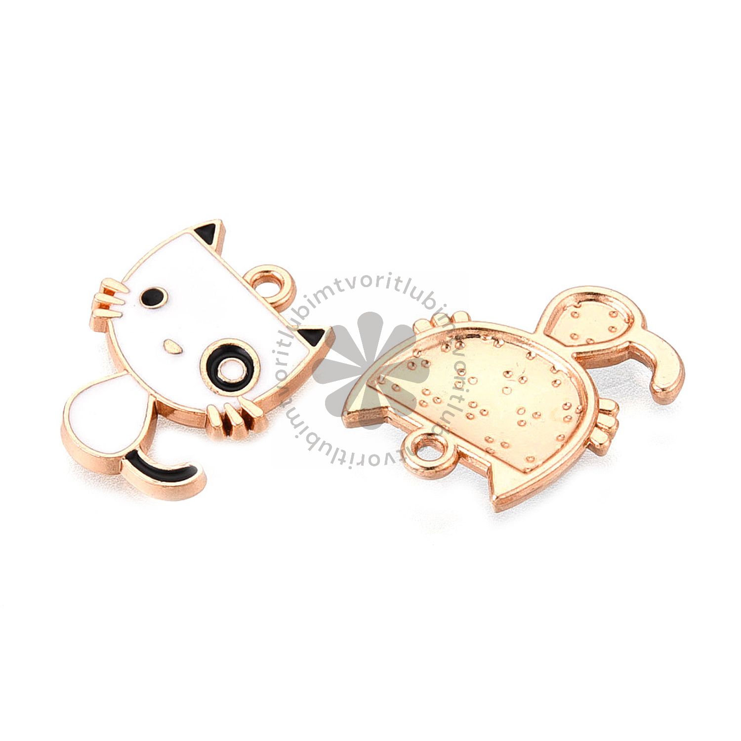 Roztomilý prívesok v tvare mačičky je ideálny na tvorbu originálnych šperkov aj doplnkov. Kombinácia zlatistej farby kovu a bielého smaltu pôsobí elegantne, výrazne a perfektne sa hodí na náušnice, náramky aj náhrdelníky. Prívesok je vyrobený zo zliatiny bez kadmia a olova, takže je bezpečný na handmade tvorbu.