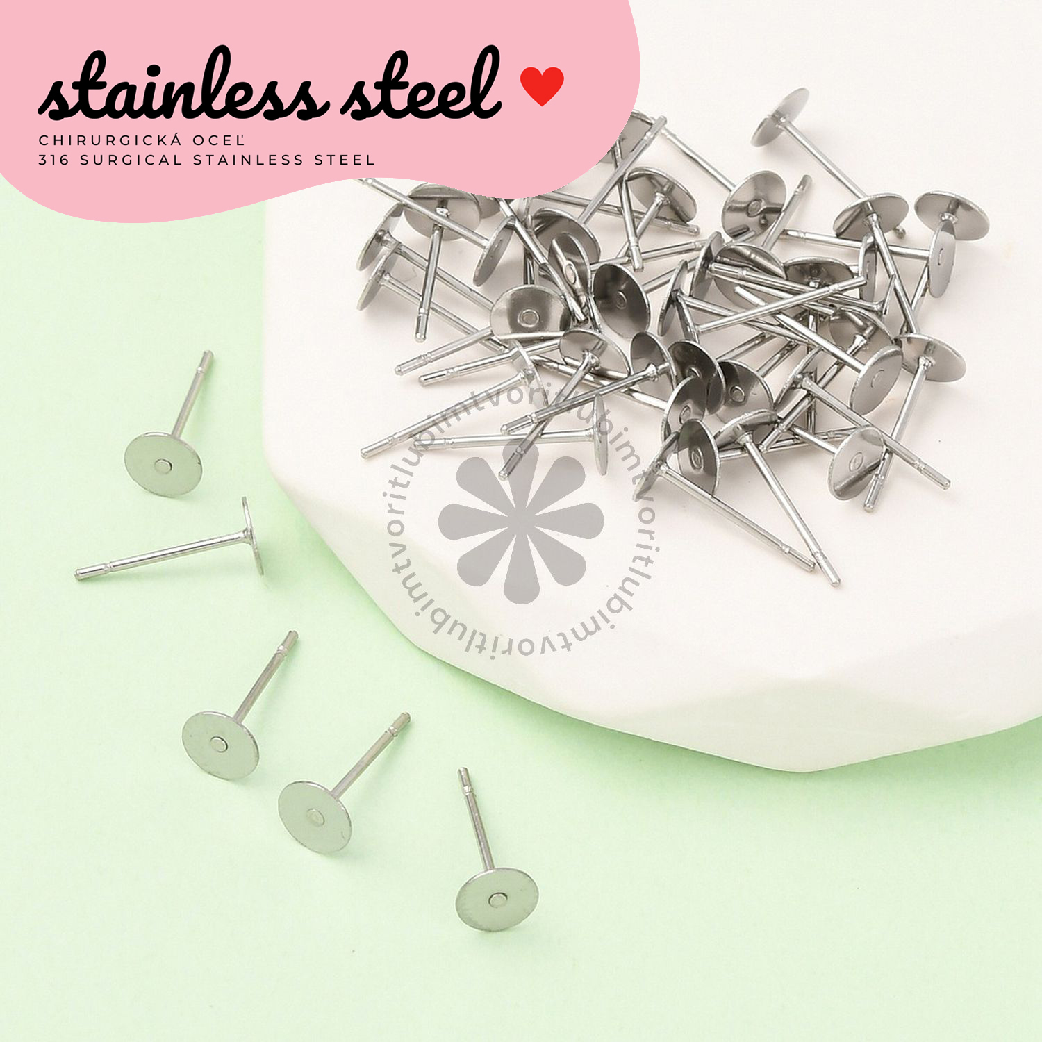 Praktické náušnicové puzetové lôžka z 316 chirurgickej nerezovej ocele sú ideálne na výrobu vlastných náušníc a originálnych handmade doplnkov. Plochá okrúhla ploška umožňuje jednoduché nalepenie kabošonov, kamienkov alebo iných ozdobných prvkov podľa vlastnej fantázie. Prevedenie vo farbe nerezu pôsobí univerzálne a elegantne, takže sa hodí na rôzne štýly kreatívneho tvorenia.otrebeniu.