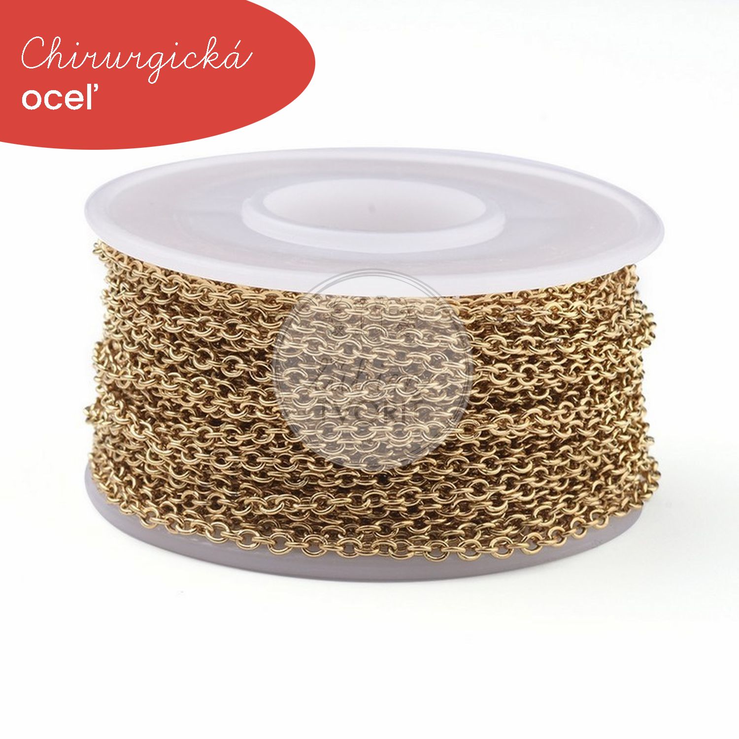 Retiazka z nerezovej ocele 304 s povrchovou úpravou IP (Ion Plating) je pevná, odolná voči opotrebovaniu a má trvácny zlatý lesk. Spájkované očká zabezpečujú vyššiu pevnosť a spoľahlivosť pri tvorbe šperkov.