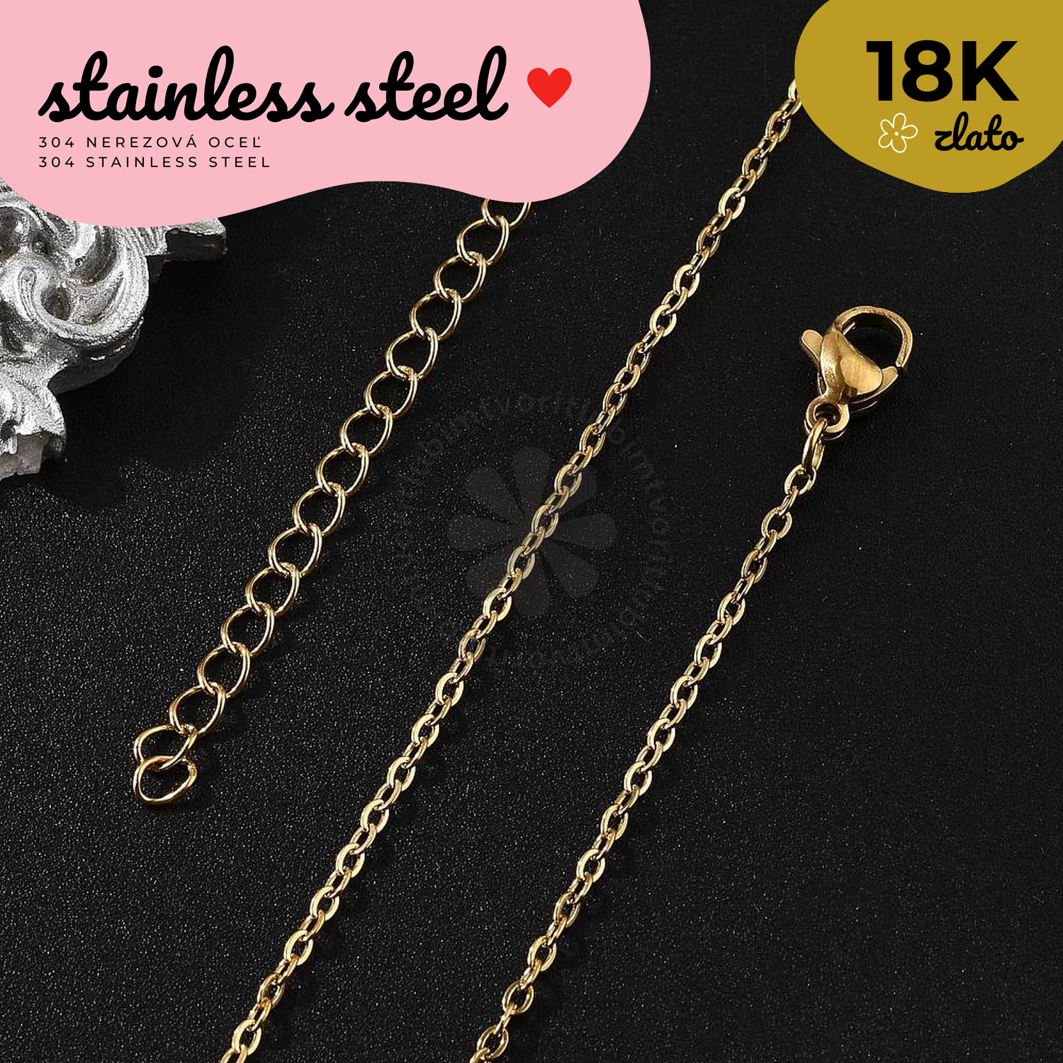 Elegantná retiazka z kvalitnej 304 nerezovej ocele je upravená 18K zlatým pozlatením s Ion Plating (IP), ktoré zabezpečuje dlhodobý lesk a odolnosť proti poškriabaniu či stmavnutiu. Retiazka je vybavená lobster zapínaním, vďaka čomu sa pohodlne nosí a bezpečne drží.