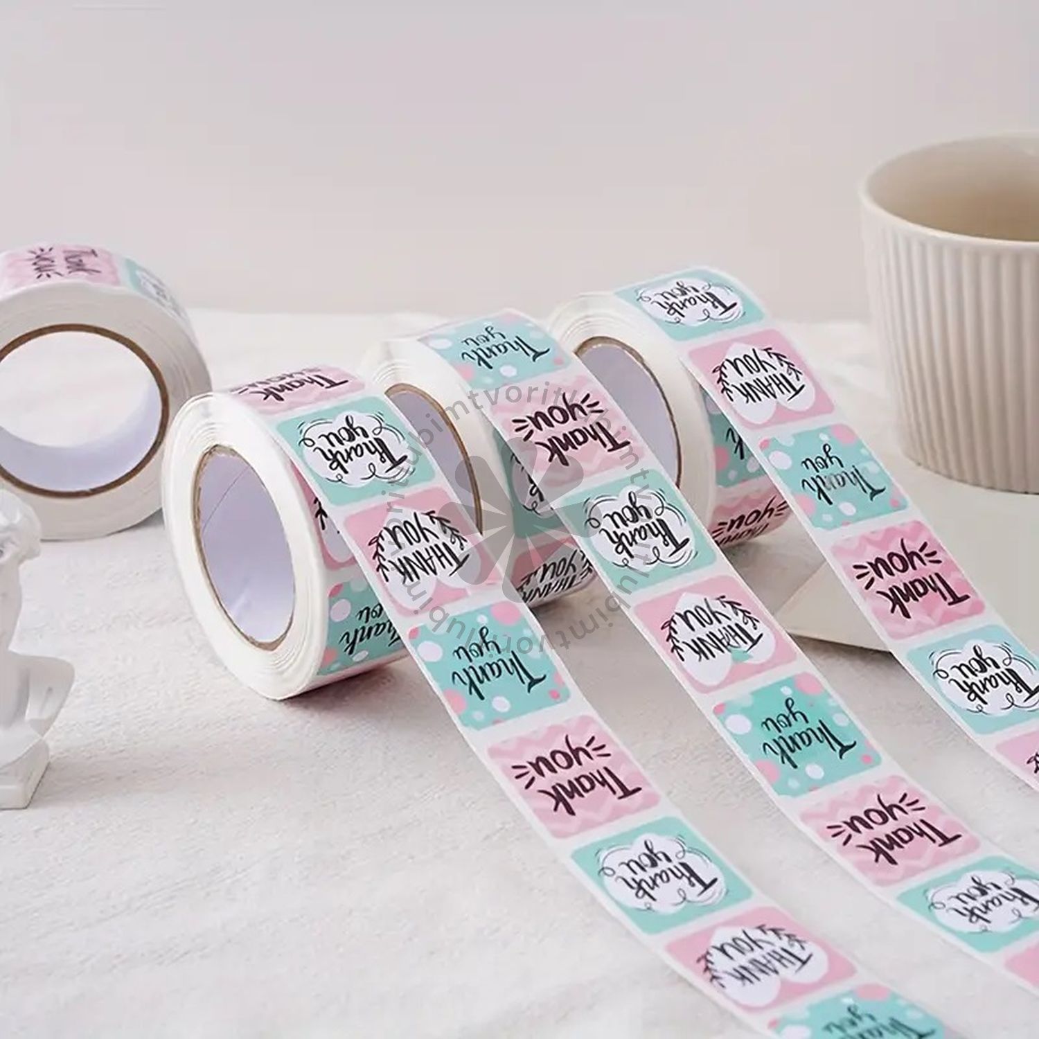 Vďaka týmto farebným samolepiacim štítkom s nápisom „Thank You“ dodáte svojim balíčkom osobitný dotyk vďačnosti. Ideálne pre sviatočné darčeky, svadby či festivaly.