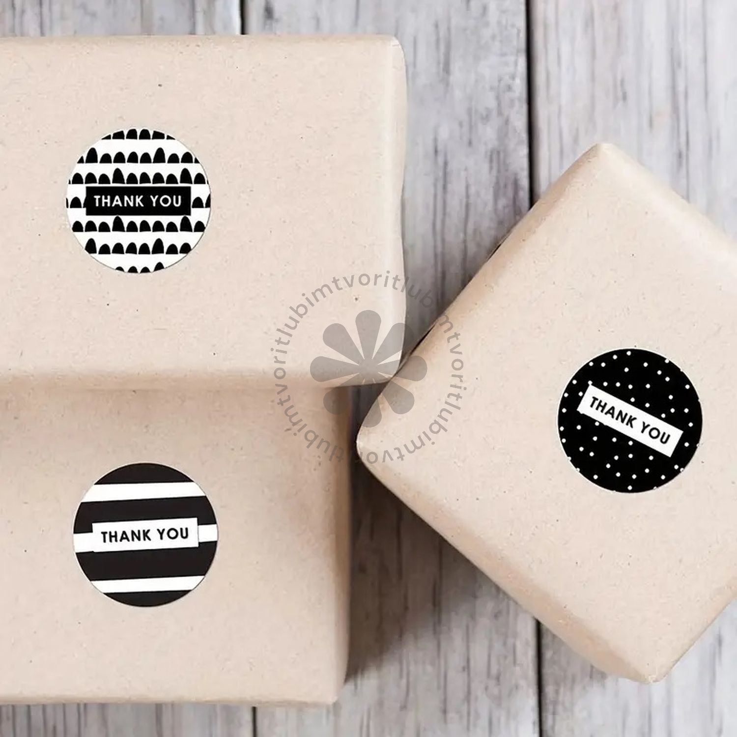 Vďaka týmto farebným samolepiacim štítkom s nápisom „Thank You“ dodáte svojim balíčkom osobitný dotyk vďačnosti. Ideálne pre sviatočné darčeky, svadby či festivaly.