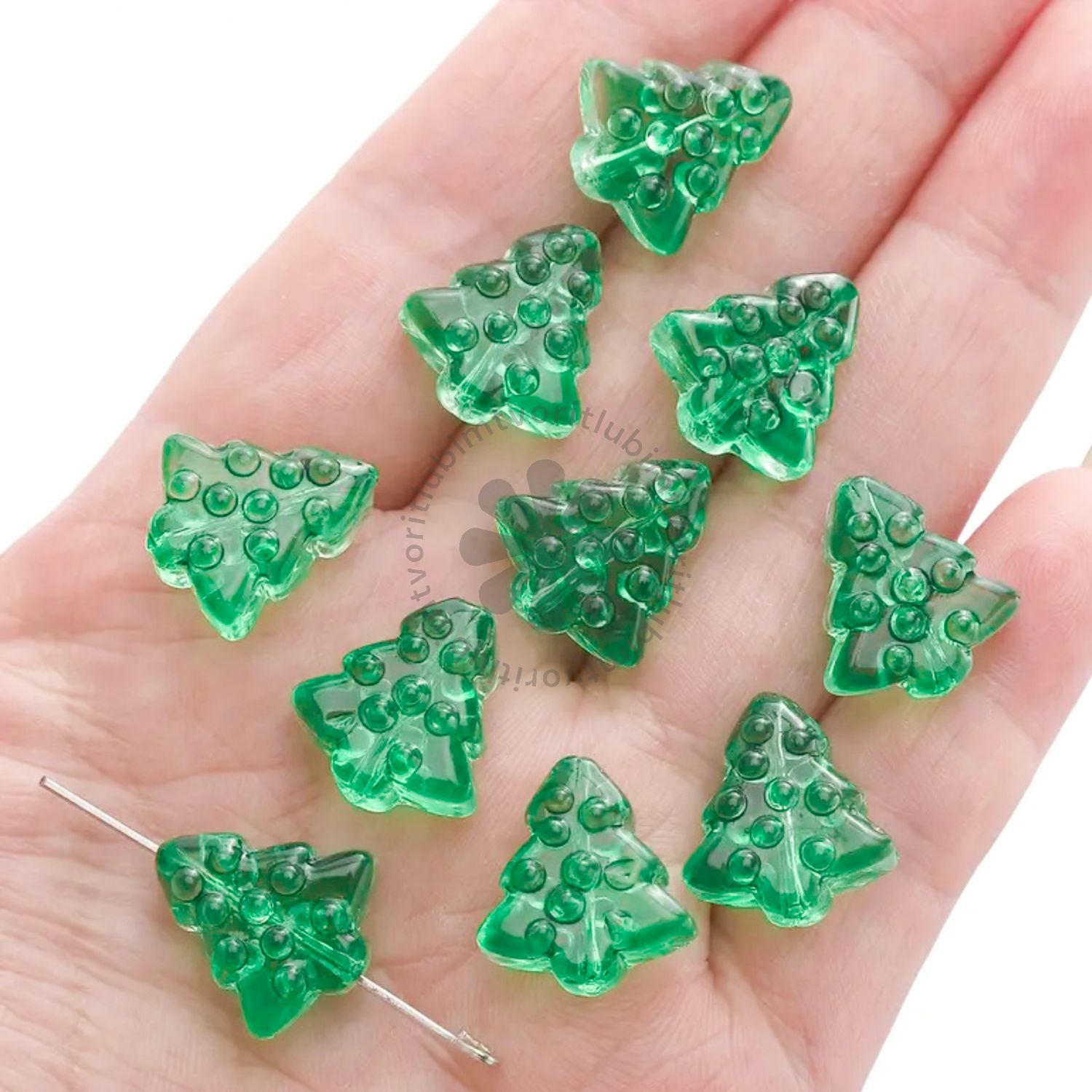 Sviatočné sklenené korálky v tvare vianočného stromčeka – vhodné na výrobu šperkov a vianočné tvorenie.