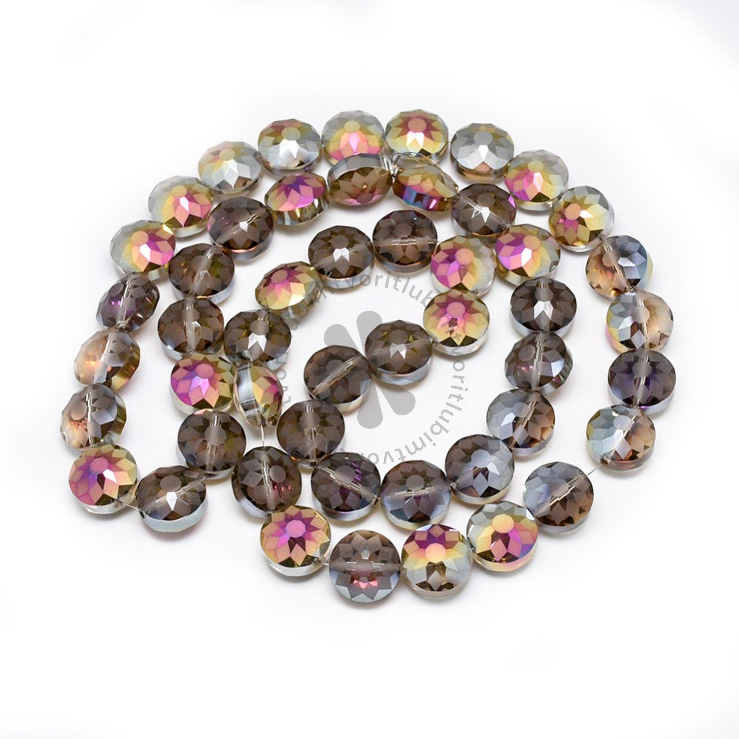 Elegantné sklenené korálky s matným povrchom a dúhovým pokovovaním, ktoré im dodáva jemný lesk a hĺbku. Brúsený tvar odráža svetlo z rôznych uhlov a vytvára sofistikovaný efekt – ideálne pre moderné aj romantické šperky. Skvelé na náhrdelníky, náramky či náušnice s jemným leskom.