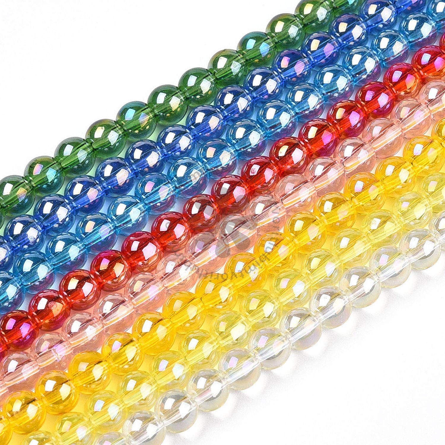 Lesklé sklenené korálky s povrchovou úpravou AB, ktorá im dodáva nádherný dúhový odlesk. Sú ideálne na tvorbu náramkov, náhrdelníkov, náušníc či iných originálnych šperkov. Vďaka priehľadnému prevedeniu a elektrolytickému pokovovaniu pôsobia elegantne a žiarivo.