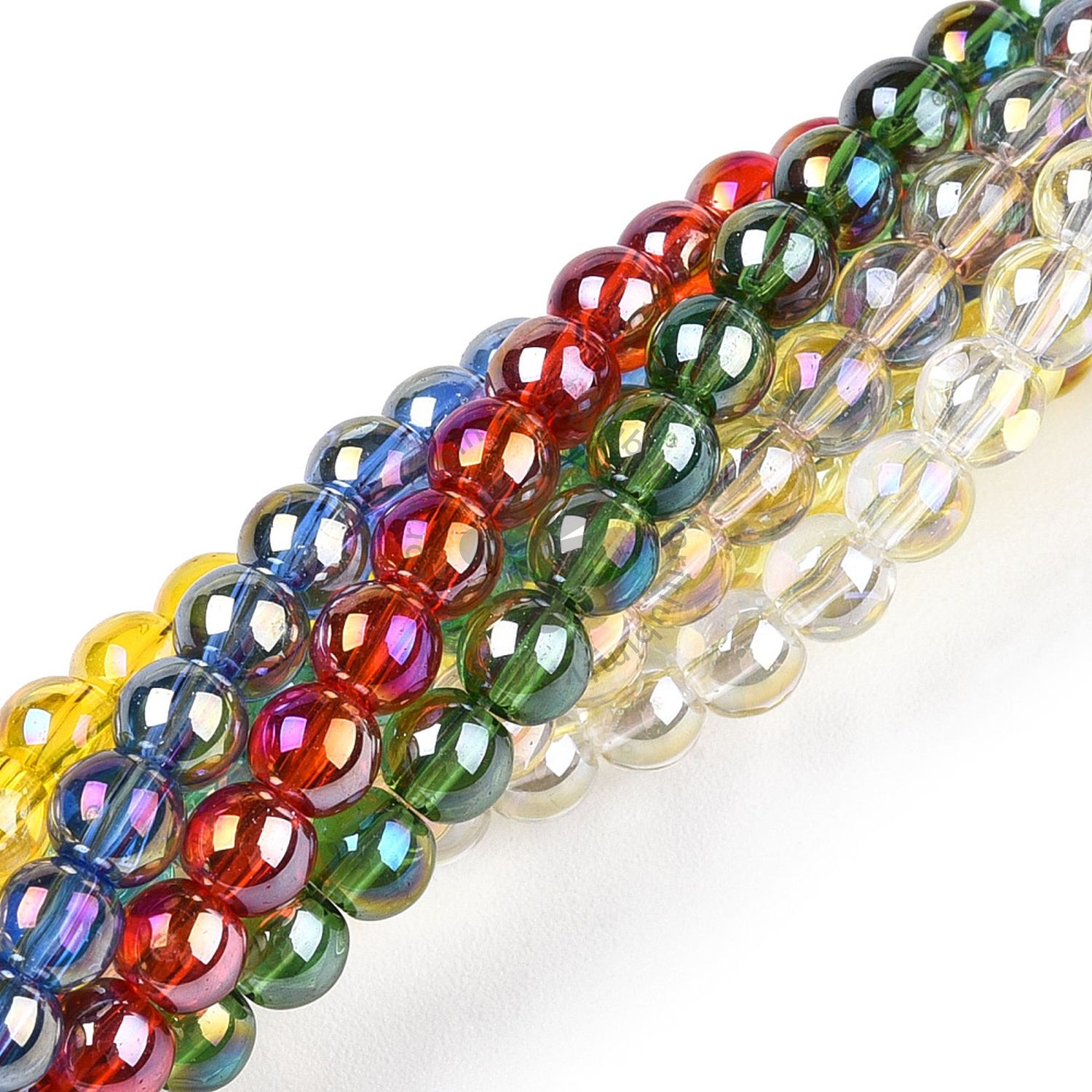 Lesklé sklenené korálky s povrchovou úpravou AB, ktorá im dodáva nádherný dúhový odlesk. Sú ideálne na tvorbu náramkov, náhrdelníkov, náušníc či iných originálnych šperkov. Vďaka priehľadnému prevedeniu a elektrolytickému pokovovaniu pôsobia elegantne a žiarivo.