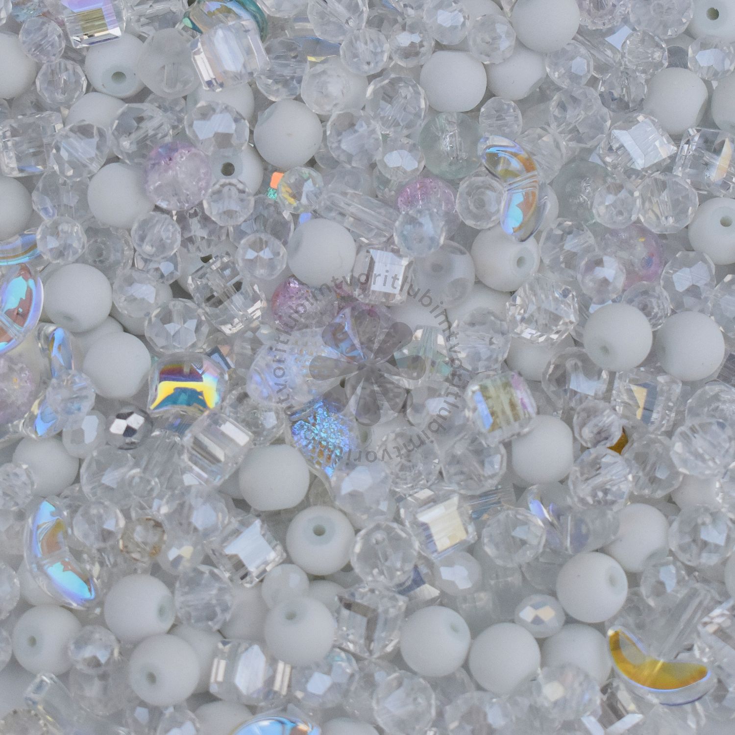 Pestrý mix sklenených korálikov rôznych tvarov a veľkostí, ideálny na tvorbu originálnych šperkov a dekorácií. Perfektná voľba pre kreatívne projekty, kde každý korálik dodá jedinečný vzhľad.