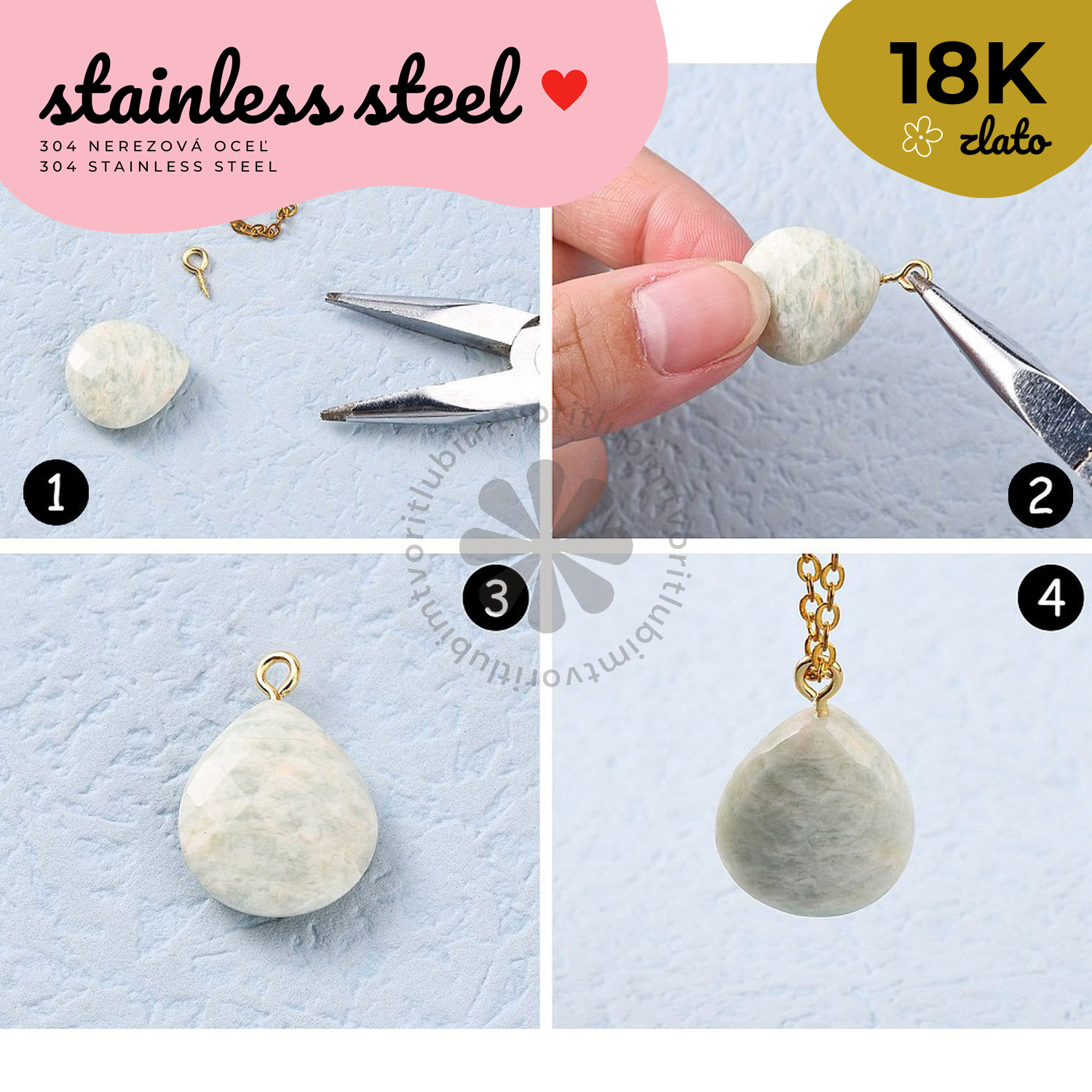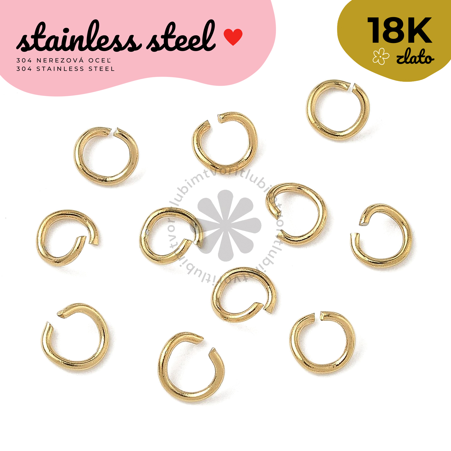 Spojovacie krúžky z 304 nerezovej ocele s povrchovou úpravou pravým 18K zlatom pomocou technológie Ion Plating (IP). Sú pevné, odolné a nestrácajú svoj lesk ani pri dlhodobom nosení. Perfektné na spájanie komponentov, retiazok či príveskov pri výrobe šperkov.