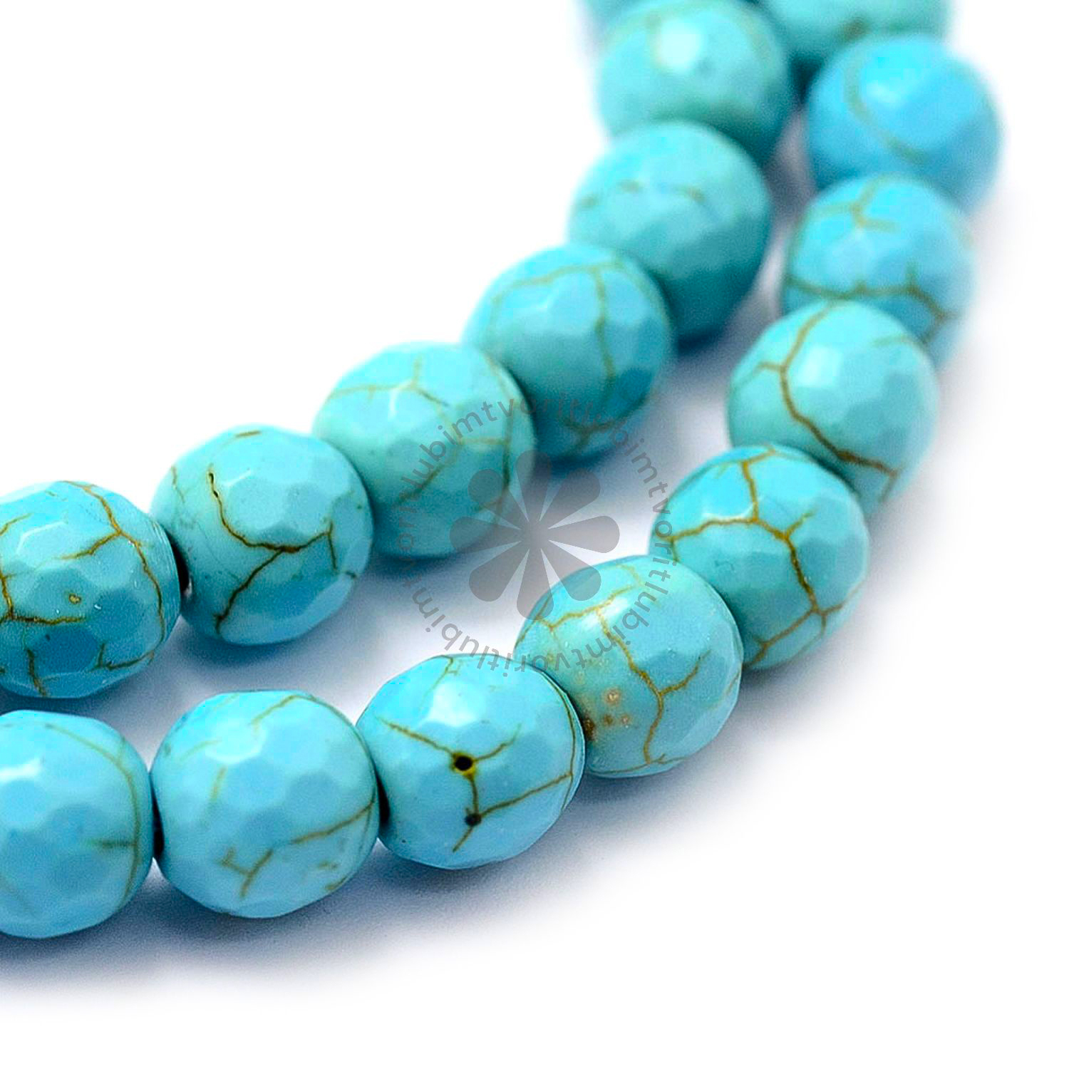 Vlastnosti syntetického tyrkysu: syntetický tyrkys je odolný, menej porézny ako prírodný kameň a dobre si zachováva svoju farbu. Vďaka fazetovaniu krásne odráža svetlo, čo ho robí skvelou voľbou na výrobu luxusne pôsobiacich náramkov, náhrdelníkov a ďalších elegantných doplnkov