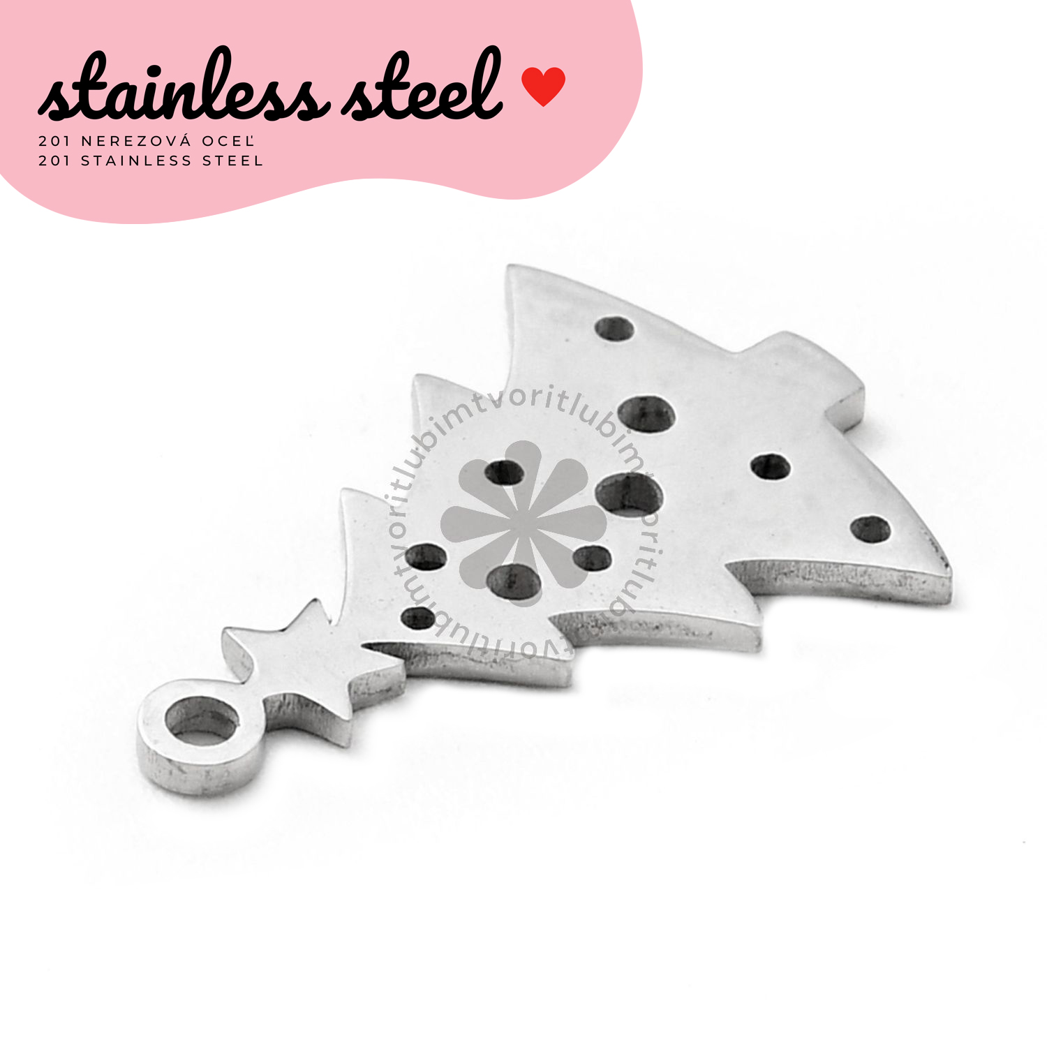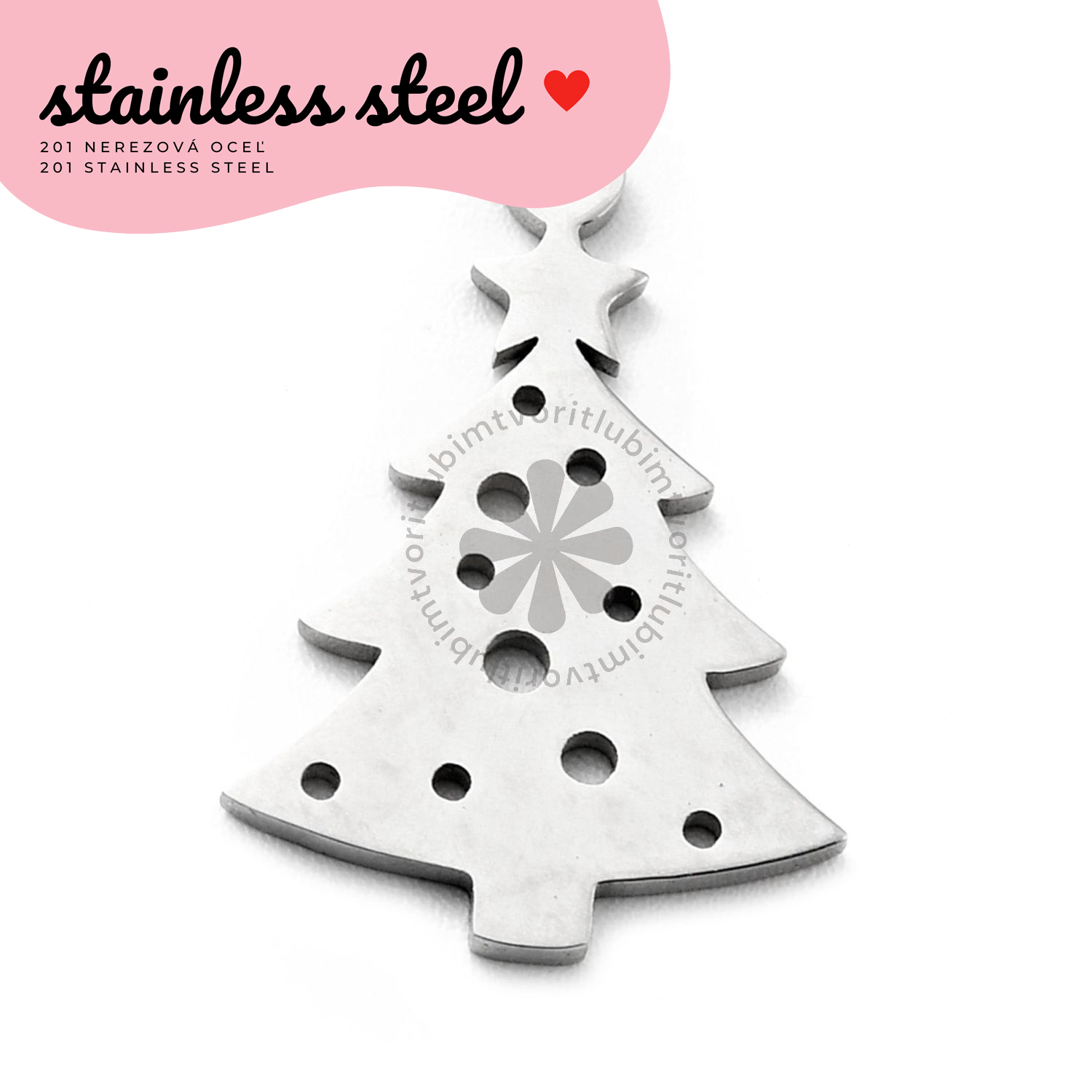 Elegantný prívesok v tvare vianočného stromčeka, vyrobený z odolnej nečernajúcej ocele 201. Je ideálny na tvorbu jemných vianočných šperkov či ozdôb, ktoré si zachovajú svoj lesk aj po dlhom čase. Perfektný doplnok na náhrdelníky, náramky alebo sviatočné dekorácie.